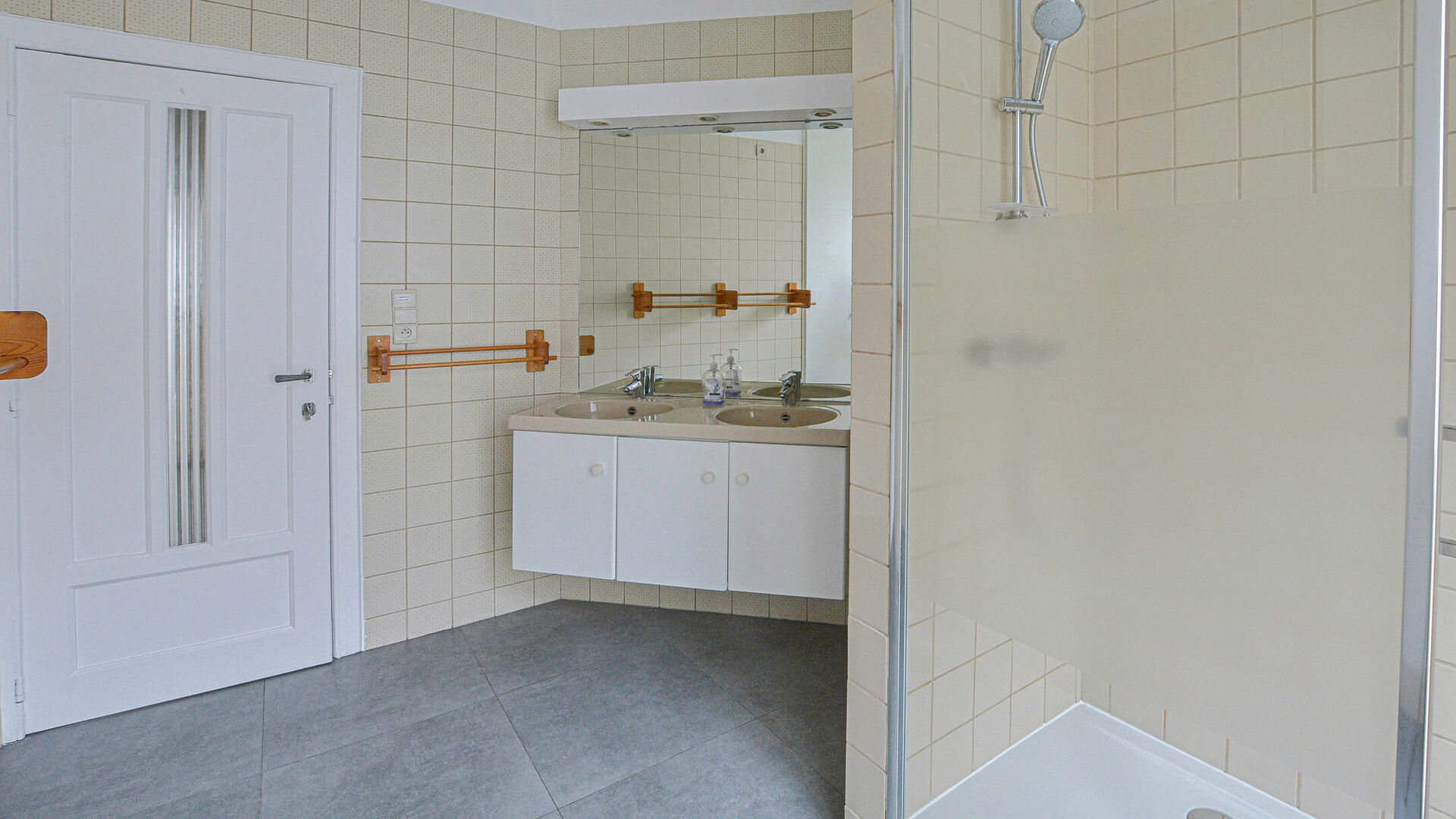 Night hall with separate toilet // 2nd bedroom +/-19 m² with built-in wardrobes // 3rd bedroom +/- 11 m² // 4th bedroom +/-25 m² with integrated dressing //bathroom with shower, double sink, and access to a balcony