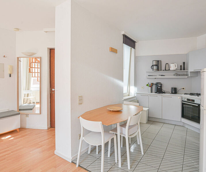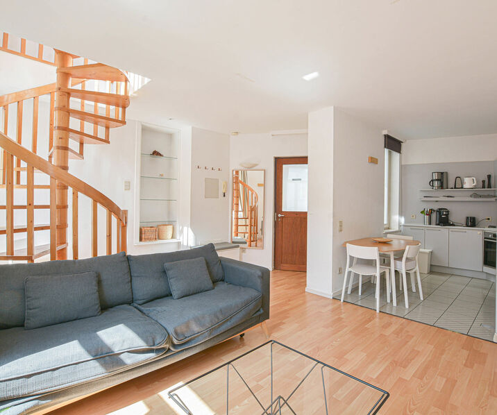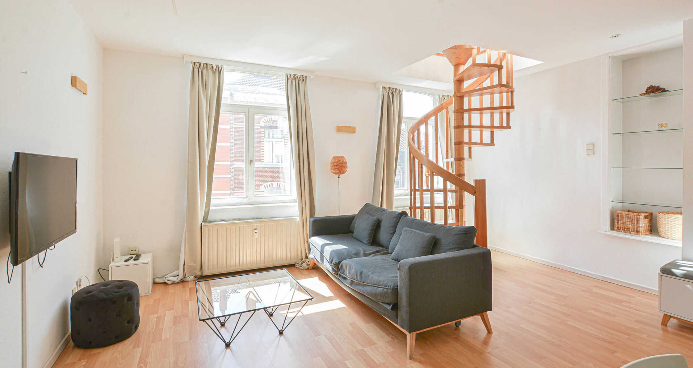 This furnished apartment of +/-59 m² (according to the energy performance certificate) is located on the 2nd and 3rd floors and is composed of: