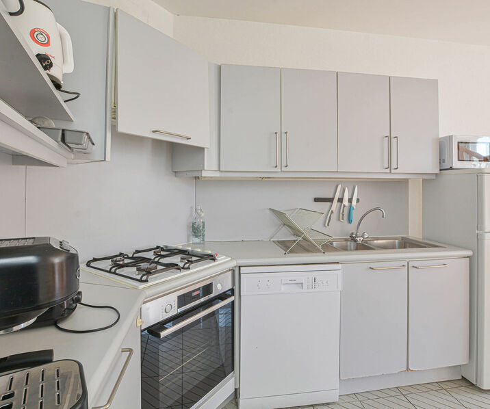 Entrance hall with cloakroom area, bright living and dining room of +/-18 m² with fully equipped open kitchen.