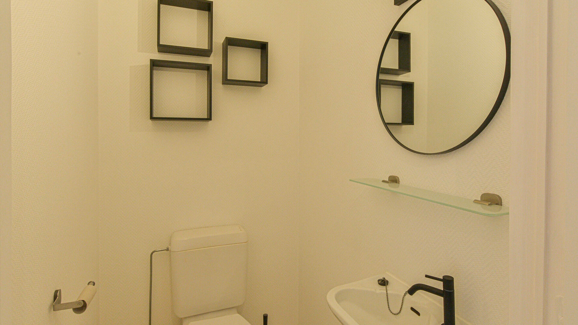 This renovated apartment, situated on the 1st floor with an elevator, is composed as follows: