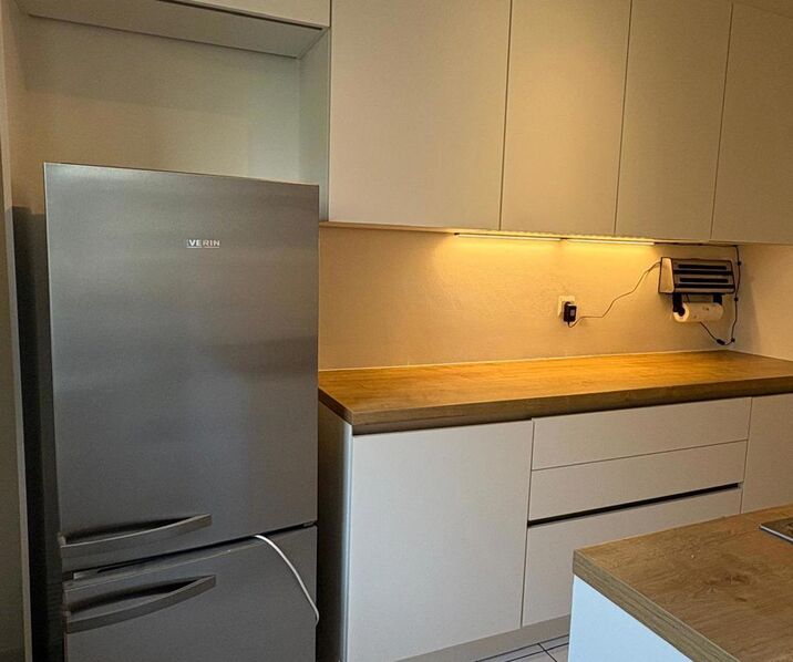 Vanuit de living is er toegang tot een Ingerichte keuken. Via de slaapkamers is er een toegang tot een klein verzorgd terras en tuin. Bij het appartement hoort ook een ruime garage achteraan het appartementsgebouw. De garage is goed bereikbaar via een brede oprit.