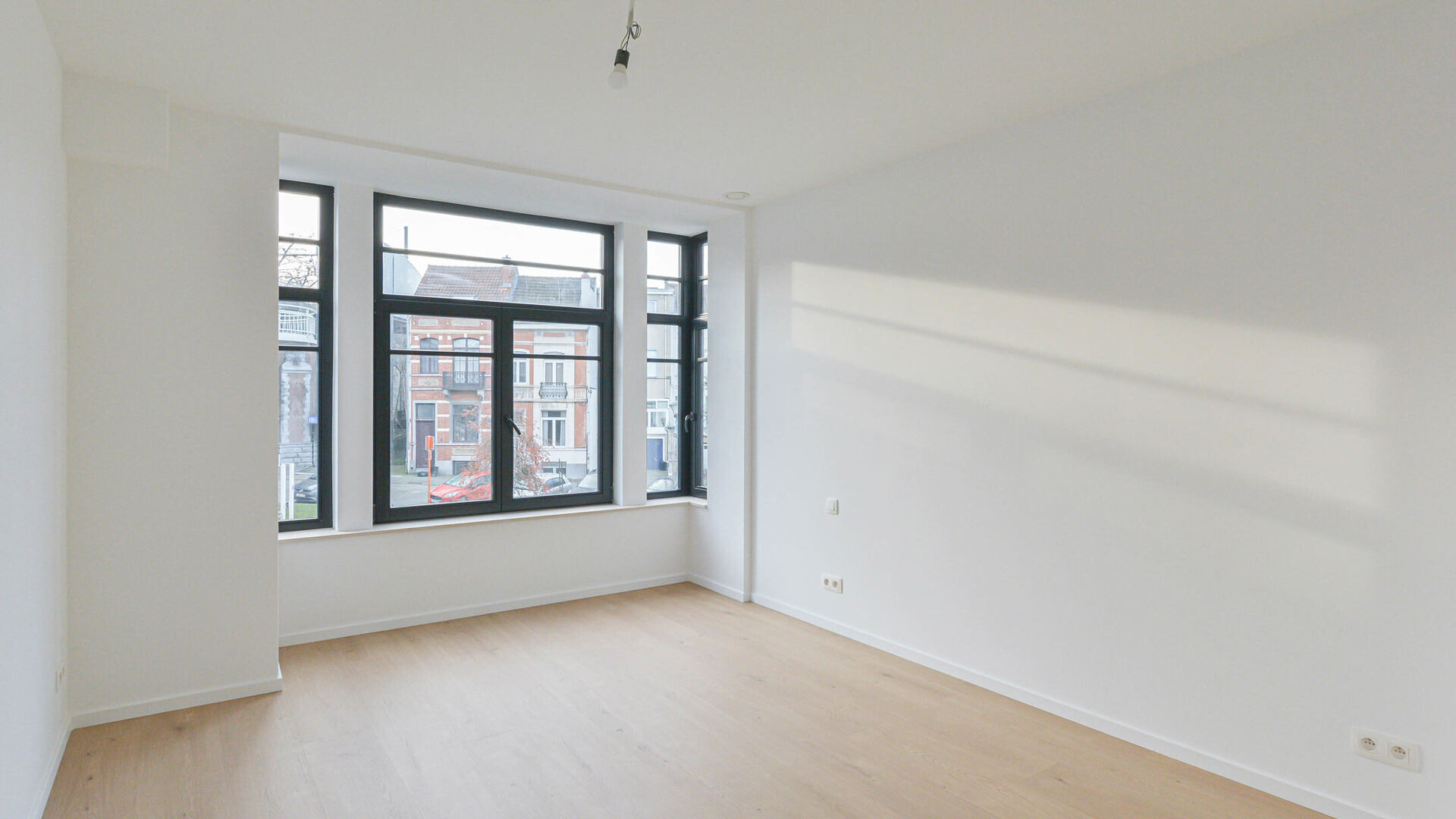 This fully renovated apartment of +/-78 m² (according to EPC) is located on the first floor of a small building without elevator and composed of: