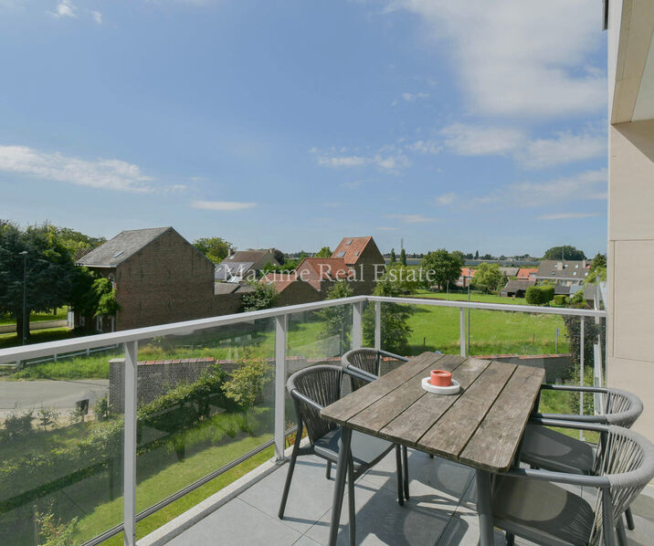 Composed as follows: entrance hall // separate toilet // living room +/- 32m² with acces to SOUTH-WEST terrace +/- 11,50m² // fully equipped USA kitchen (dishwasher, fridge/freezer, oven, extraction, induction cooker ...) and breakfast corner // laundry space // 2 bedrooms (+/- 10,5 -11m²) with closets and a little balcony // bathroom (shower and dubble sink) // cellar //