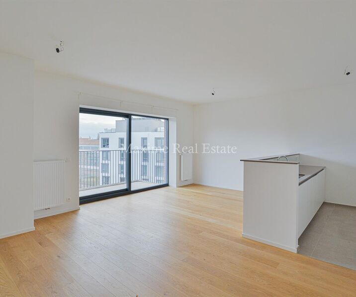 Beautiful apartment +/- 95m², located on the 5th floor of a building of 2017. Consisting of: entrance hall with separated WC and laundry room // living room +/- 30m² with an open fully equipped kitchen (plates, oven, dishwasher, fridge / freezer) ) // 2 bedrooms +/- 10m-12m² // bathroom with bath and double sink //