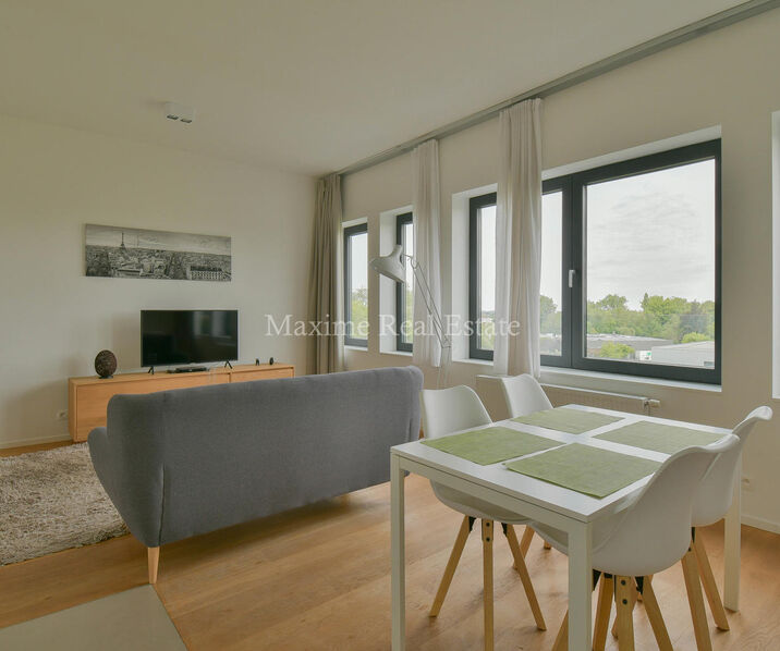 It is composed as follows: entrance hall, separate toilet, living room, open plan kitchen (ceramic hob, oven, fridge, dishwasher), 1 bedroom +/- 13m², shower room.