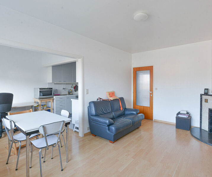 Entrance hall with separate toilet and cloakroom, a bright living and dining room of +/-20m² giving access to lovely southwest-facing terrace with open view and two built-in storage cupboards, a fully fitted kitchen (hob, oven, dishwasher, refrigerator), two comfortable bedrooms of 13 m² and 9 m², and a bathroom with bathtub with shower and connection for a washing machine and dryer. The apartment also comes with a private cellar and access to a shared bicycle room. Extra information: Double glazing, a collectif heating on oil, electric boiler for hot water, monthly charges of €100/month (€70 provision for heating and a €30 for maintenance of common areas). Available from 30 October 2025. For further details or to arrange a viewing, please contact us on 02.771.16.35 or at info@maxime-realestate.be. All details and measurements are provided for information purposes only and have no contractual value.