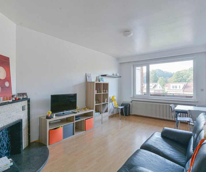 Entrance hall with separate toilet and cloakroom, a bright living and dining room of +/-20m² giving access to lovely southwest-facing terrace with open view and two built-in storage cupboards, a fully fitted kitchen (hob, oven, dishwasher, refrigerator), two comfortable bedrooms of 13 m² and 9 m², and a bathroom with bathtub with shower and connection for a washing machine and dryer. The apartment also comes with a private cellar and access to a shared bicycle room. Extra information: Double glazing, a collectif heating on oil, electric boiler for hot water, monthly charges of €100/month (€70 provision for heating and a €30 for maintenance of common areas). Available from 30 October 2025. For further details or to arrange a viewing, please contact us on 02.771.16.35 or at info@maxime-realestate.be. All details and measurements are provided for information purposes only and have no contractual value.