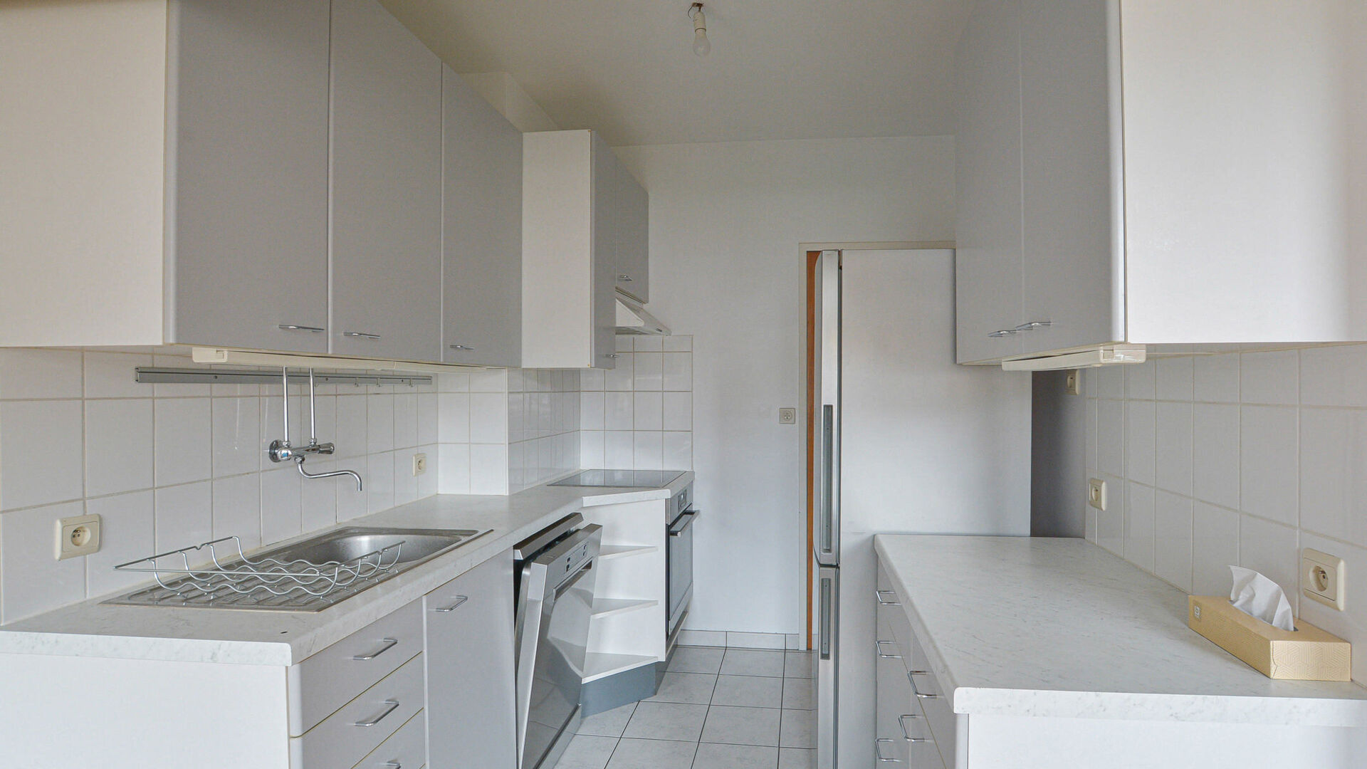 Entrance hall with separate toilet and cloakroom, a bright living and dining room of +/-20m² giving access to lovely southwest-facing terrace with open view and two built-in storage cupboards, a fully fitted kitchen (hob, oven, dishwasher, refrigerator), two comfortable bedrooms of 13 m² and 9 m², and a bathroom with bathtub with shower and connection for a washing machine and dryer. The apartment also comes with a private cellar and access to a shared bicycle room. Extra information: Double glazing, a collectif heating on oil, electric boiler for hot water, monthly charges of €100/month (€70 provision for heating and a €30 for maintenance of common areas). Available from 30 October 2025. For further details or to arrange a viewing, please contact us on 02.771.16.35 or at info@maxime-realestate.be. All details and measurements are provided for information purposes only and have no contractual value.