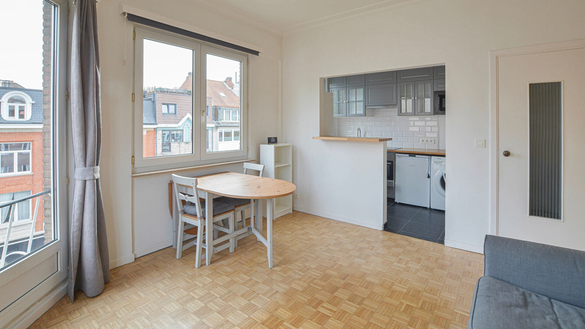 This apartment of approximately +/- 50 m², located on the 3rd floor without an elevator, is composed as follows:
