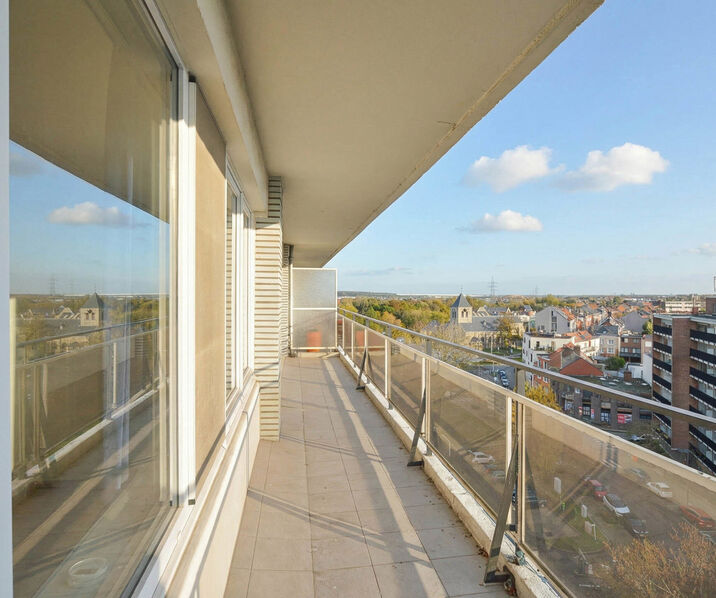 This apartment of +/- 88m² (according to the EPC) is situated on the 9th floor and is composed as follows: