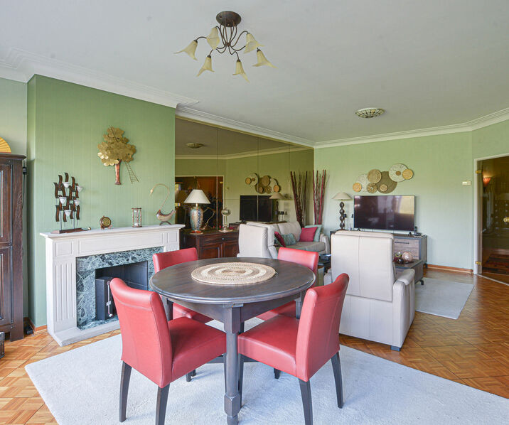 Entrance hall giving access to a spacious 32 m² living room with functional fireplace, fully equipped kitchen, separate toilet, night hall leading to 3 comfortable bedrooms (16 m², 12 m² and 10 m²), bathroom with walk-in shower, sink and second toilet, beautiful south-facing rear terrace (± 13 m²) with completely unobstructed views – ideal to enjoy the sun in peace.