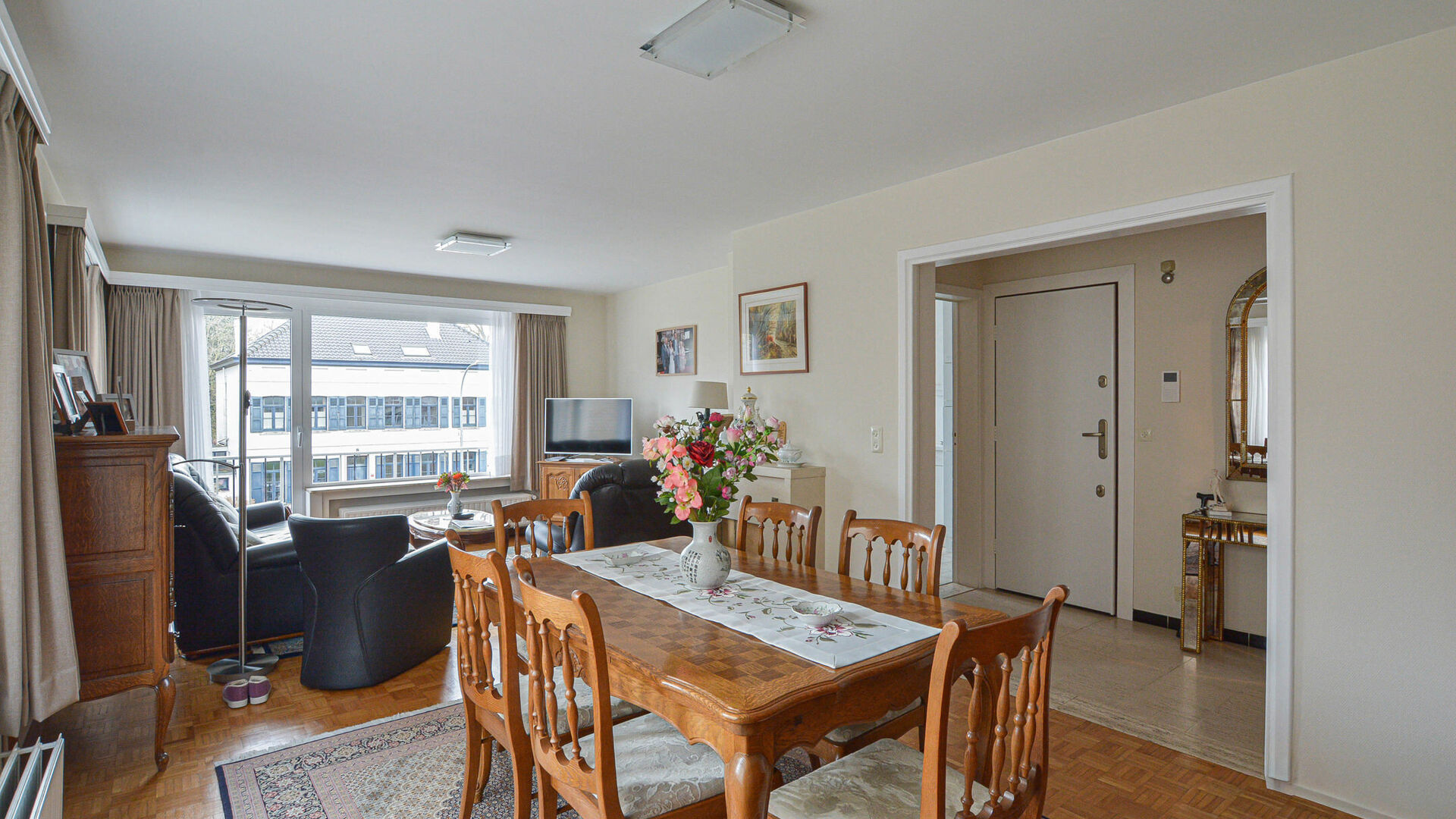 This corner apartment of +/-92m² (according to energy certificate) is located on the 2nd floor of a quiet building and is composed as follows: