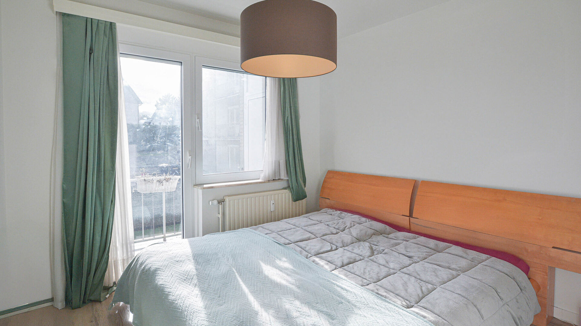 Entrance hall, bright living-dining room +/- 26m², equipped kitchen (cooker, oven, dishwasher). Night hall with separate toilet, cloakroom and storage/laundry room. 3 bedrooms of +/- 15-9-7m² , south facing terrace +/- 6m², bathroom with bath and sink.