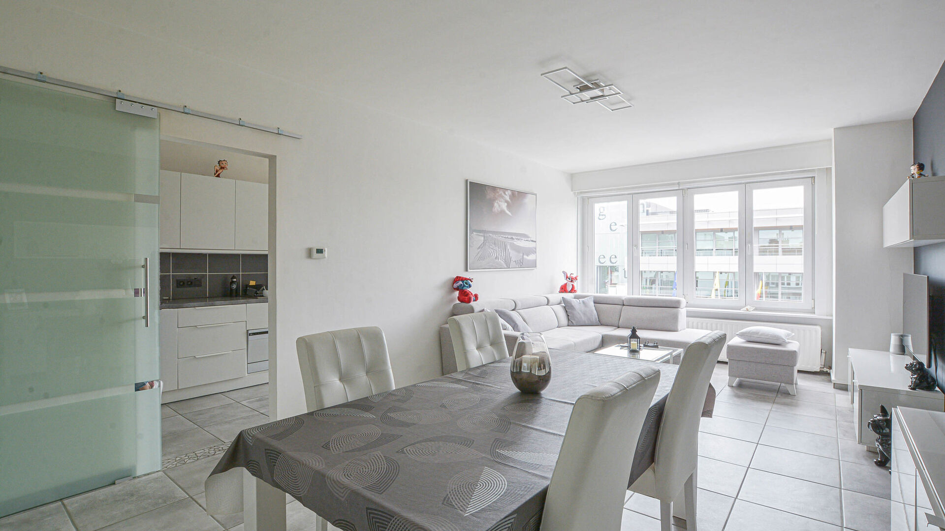 This fully renovated apartment of +/-103m² (according to energy certificate) is located on the 2nd and top floor of a small co-ownership without an elevator.