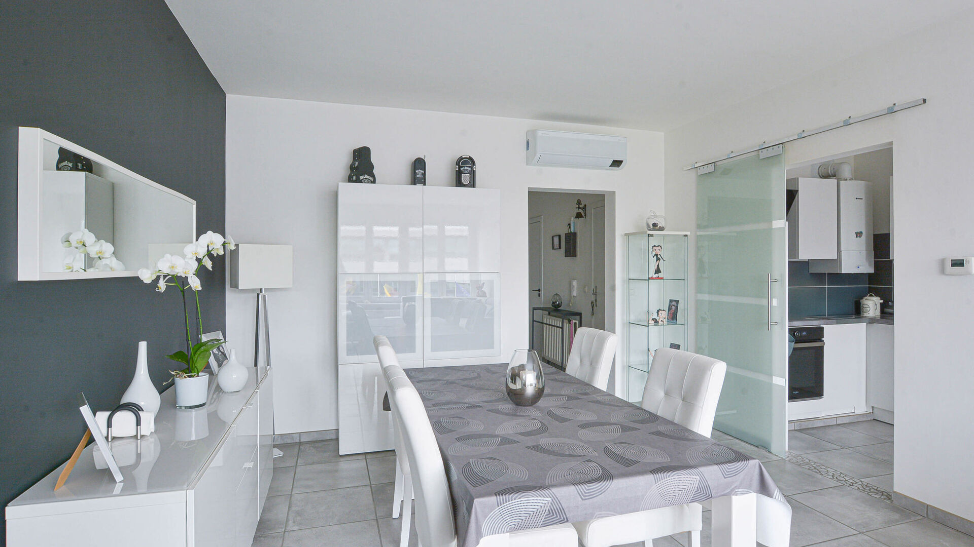 Additional information: double glazing, individual gas heating system, intercom, airco with heating pump, electricity compliant, no syndic, common charges of ±70 €/month (maintenance and lighting of common areas). Available after signing of the authentic deed.