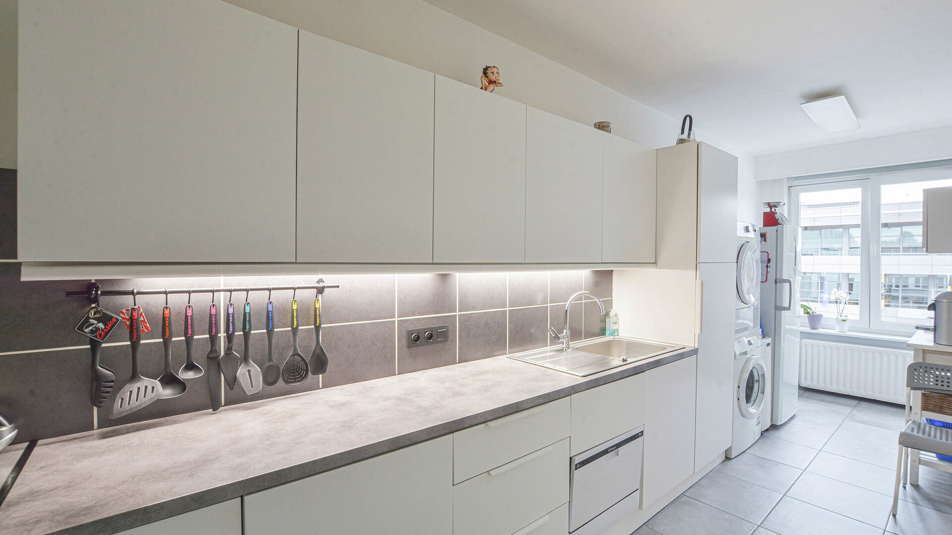 - Fully equipped kitchen with connections for a washing machine and dryer,