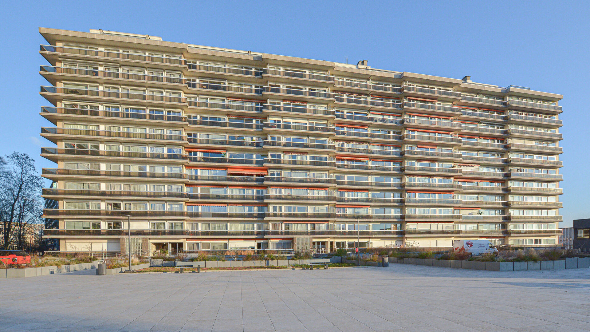 Entrance hall with built-in cloakroom, bathroom (bathtub with shower, bidet, toilet), living-dining room +/-25 m² with access to the terrace, fitted kitchen, night hall with storage and bedroom +/-14m². A mandatory spacious garage + €30.000 and a cellar are sold with the apartment.