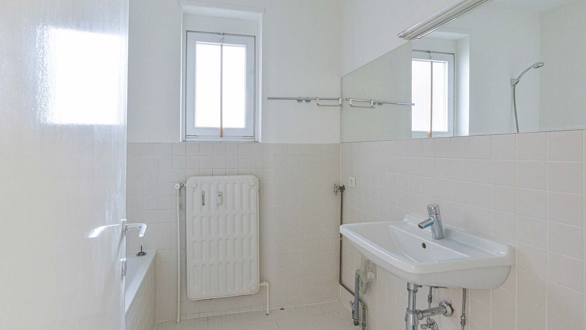 Entrance hall ±4 m² with separate toilet // bright living room ±25.5 m² with access to a closed kitchen ±6 m² (equipped with induction hob, oven, dishwasher) and storage space with built-in cupboards, leading to an east-facing balcony // two bedrooms: first bedroom ±12 m² accessed via the night hall, second bedroom ±10 m² accessed from the living room // bathroom with bathtub, sink, and washing machine connection //