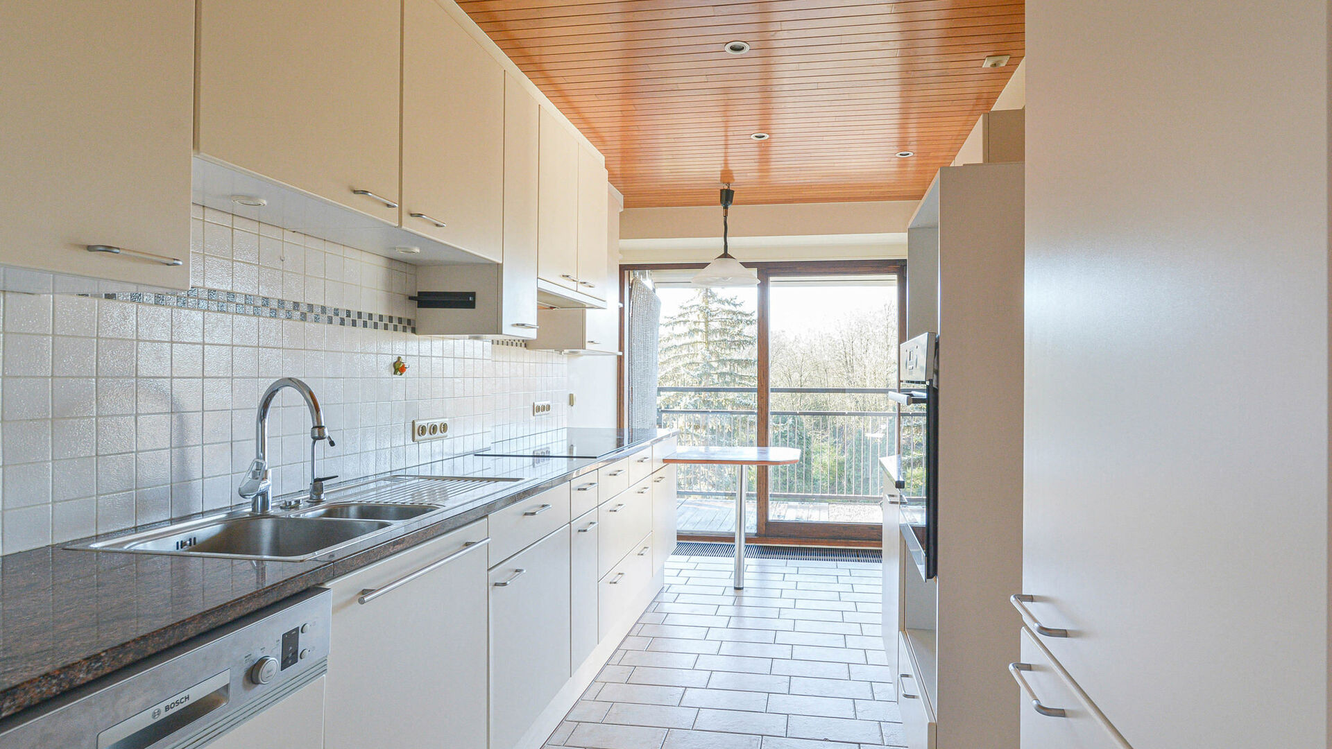 Entrance hall, a bright and spacious living/dining room of ±46 m², fully equipped kitchen with breakfast area, night hall with storage space, master bedroom of ±19 m² with built-in wardrobes and ensuite bathroom (bathtub with shower, sink, toilet, and laundry connections for washing machine/dryer), two comfortable bedrooms of ±13 m², and a shower room with sink and toilet.
