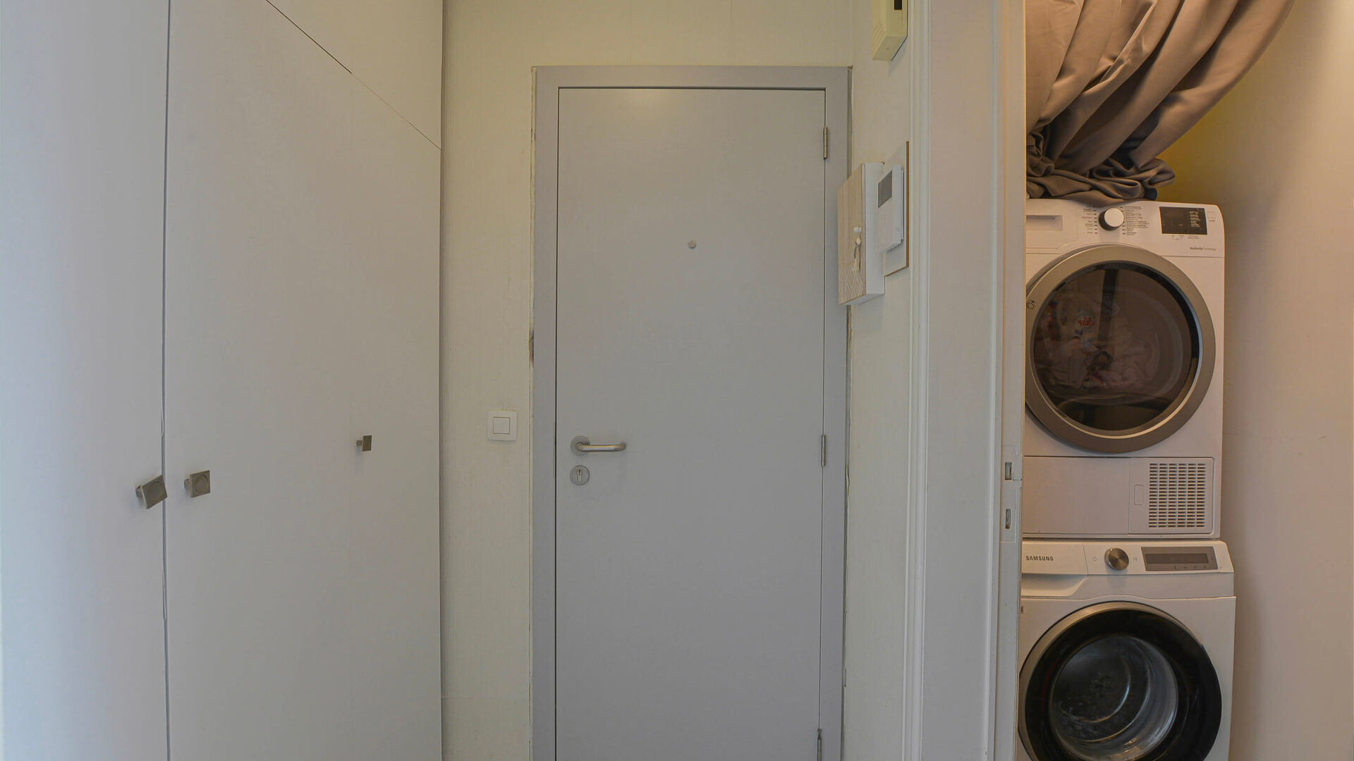 A cellar and parking space in a closed garage + €20.000 are sold together with the apartment.
