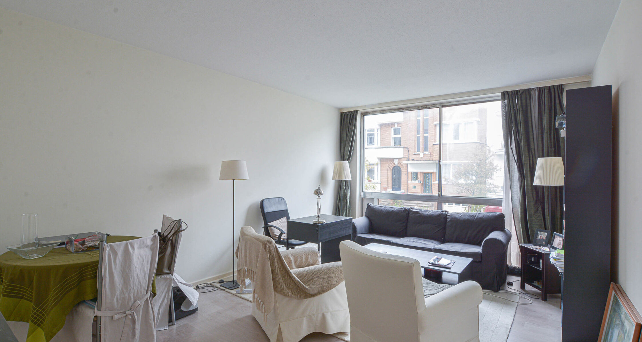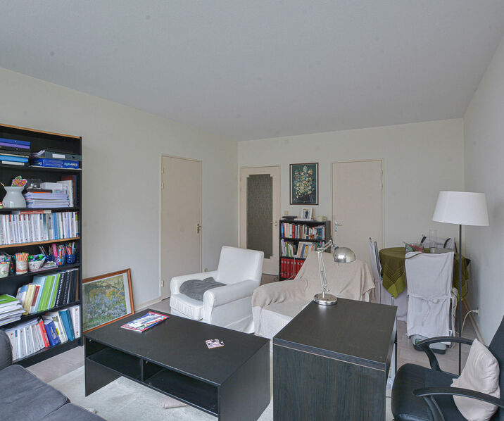 This apartment of approximately 51 m² (according to the EPC) is located on the 1st floor and is composed as follows: Entrance hall with cloakroom area and separate toilet, Bright living/dining room of ±19 m², Fully equipped kitchen (hob, oven, refrigerator, and connection for a washing machine), Bedroom of ±10 m² with adjoining bathroom (bathtub with shower and sink). A private cellar is also included.
