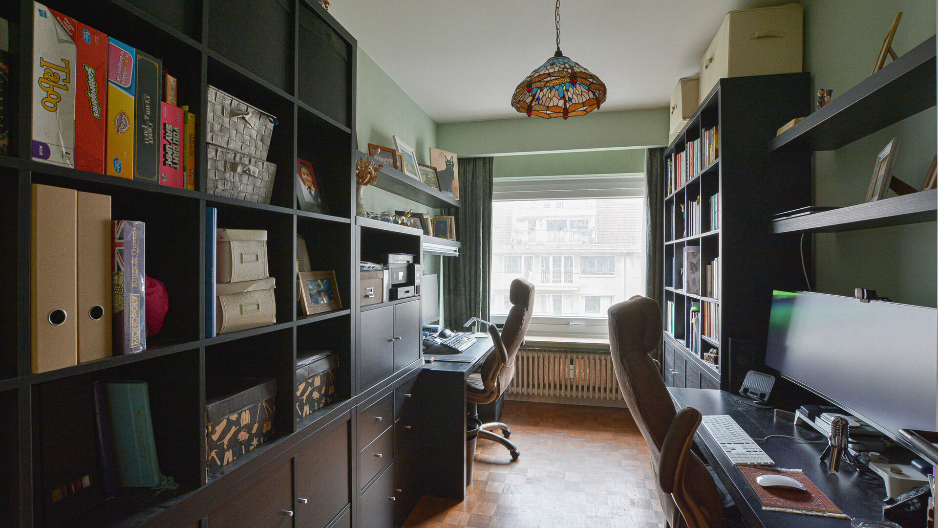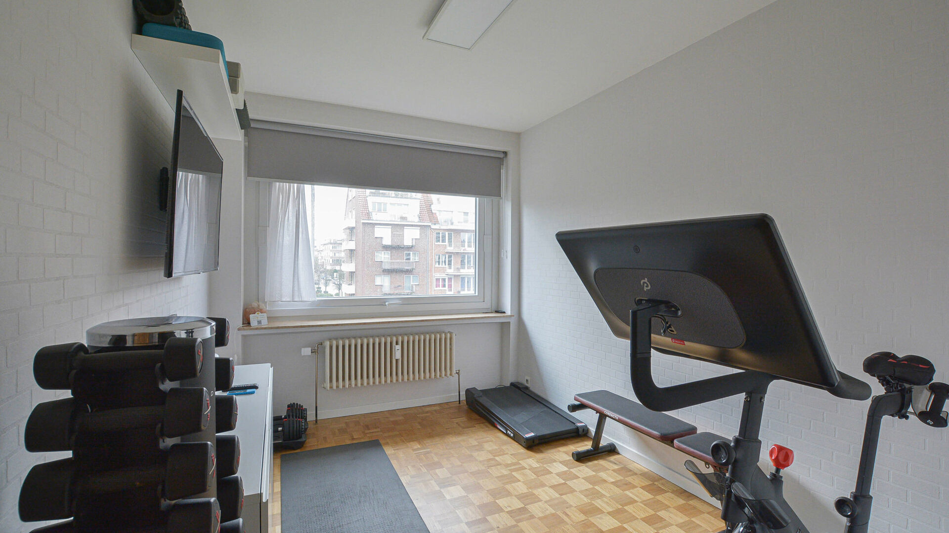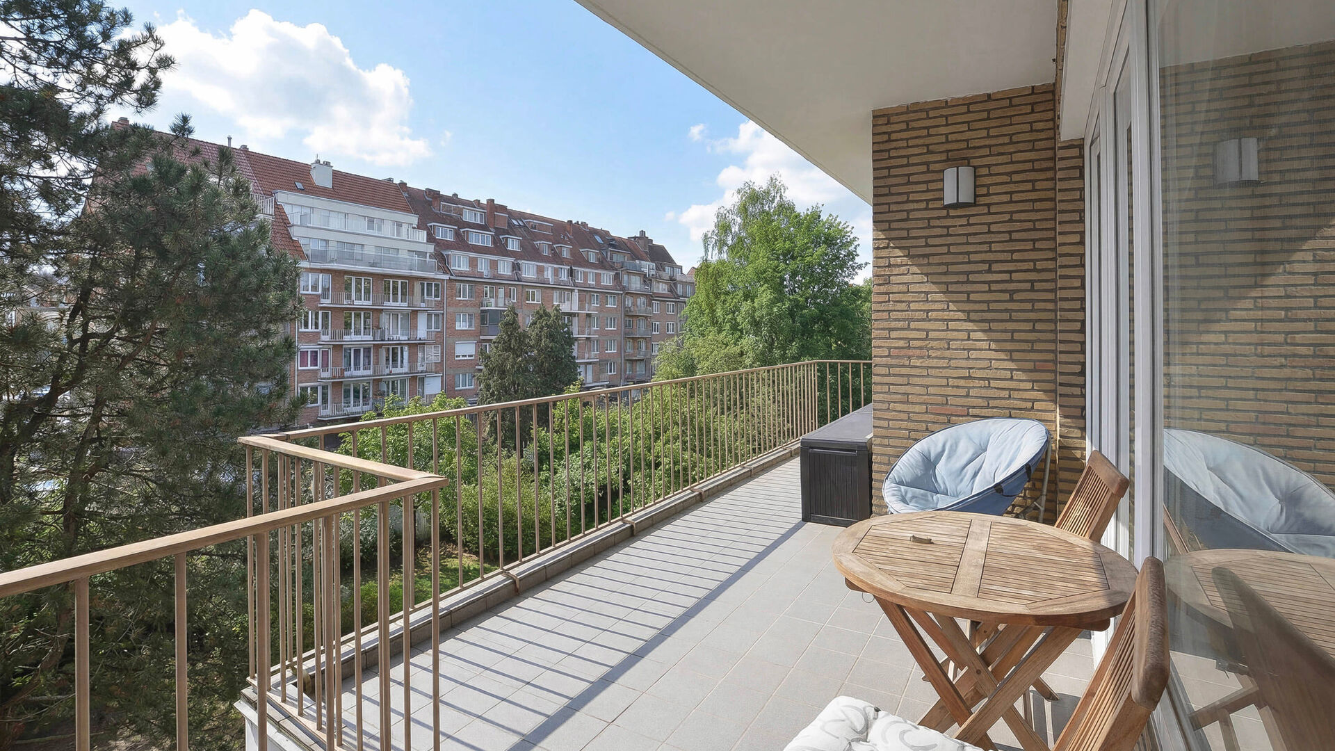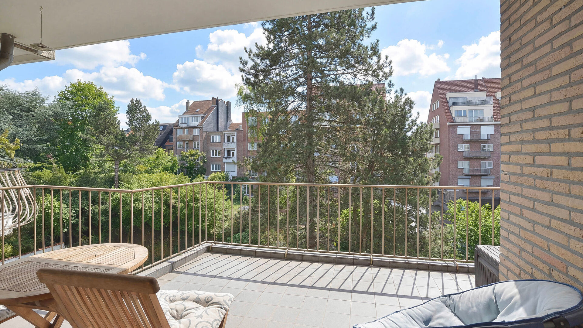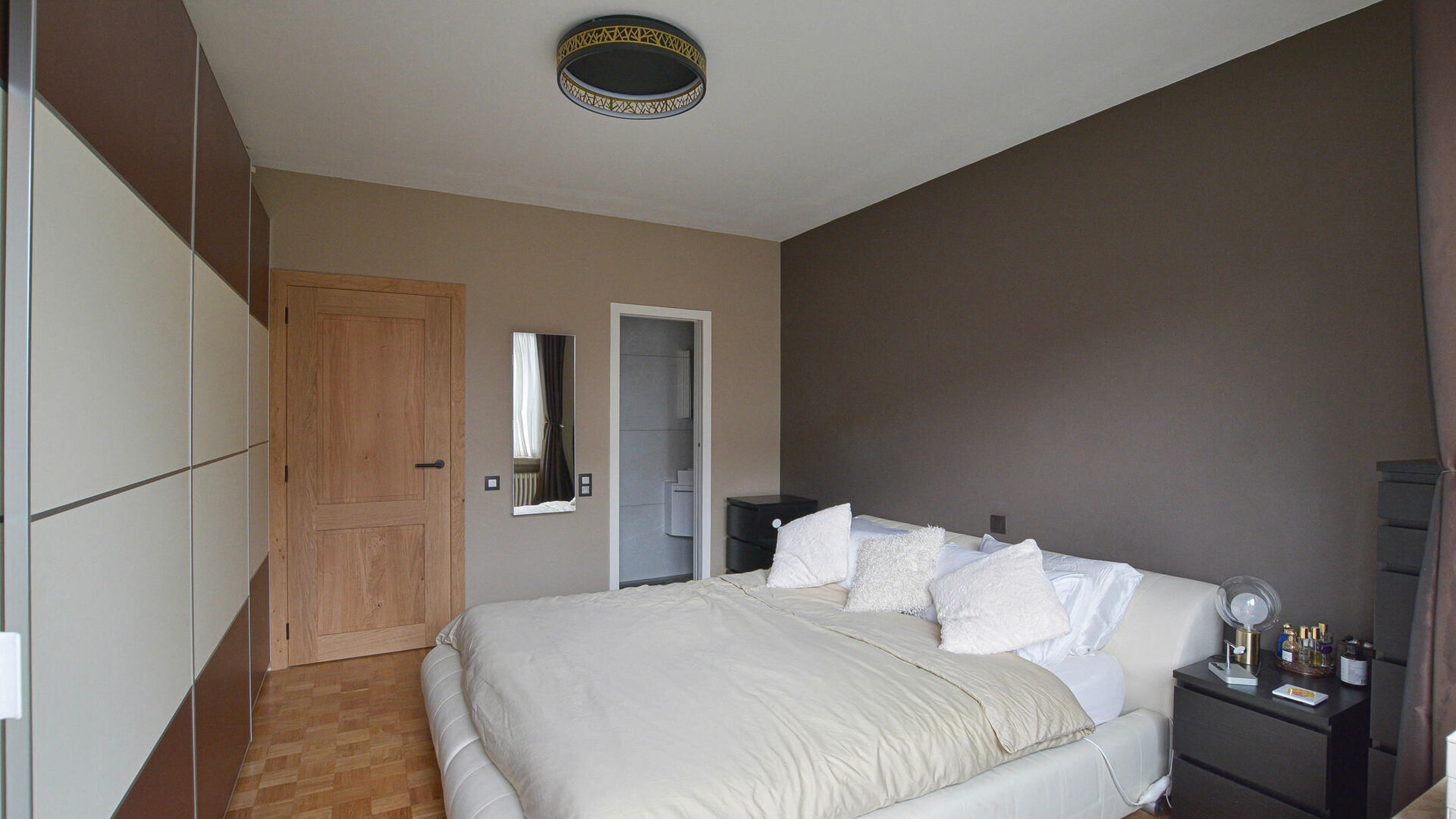 Spacious entrance hall with built-in cloakroom, bright living and dining room of +/- 60m² with working fireplace on wood and access to two large terraces (SOUTH/NORTH), the south-facing terrace of +/- 15m² offering an open view over the surrounding gardens. New fully equipped kitchen (hob, classic oven with microwave function, steamoven, dishwasher, fridge/freezer) with breakfast area. Night hall with separate toilet, master bedroom of +/- 16m² with en-suite bathroom (shower and sink) and access to the south-facing terrace, 2 bedrooms of +/- 11-10m², new bathroom (bathtub with shower, sink), storage room with connection for washing machine/dryer.