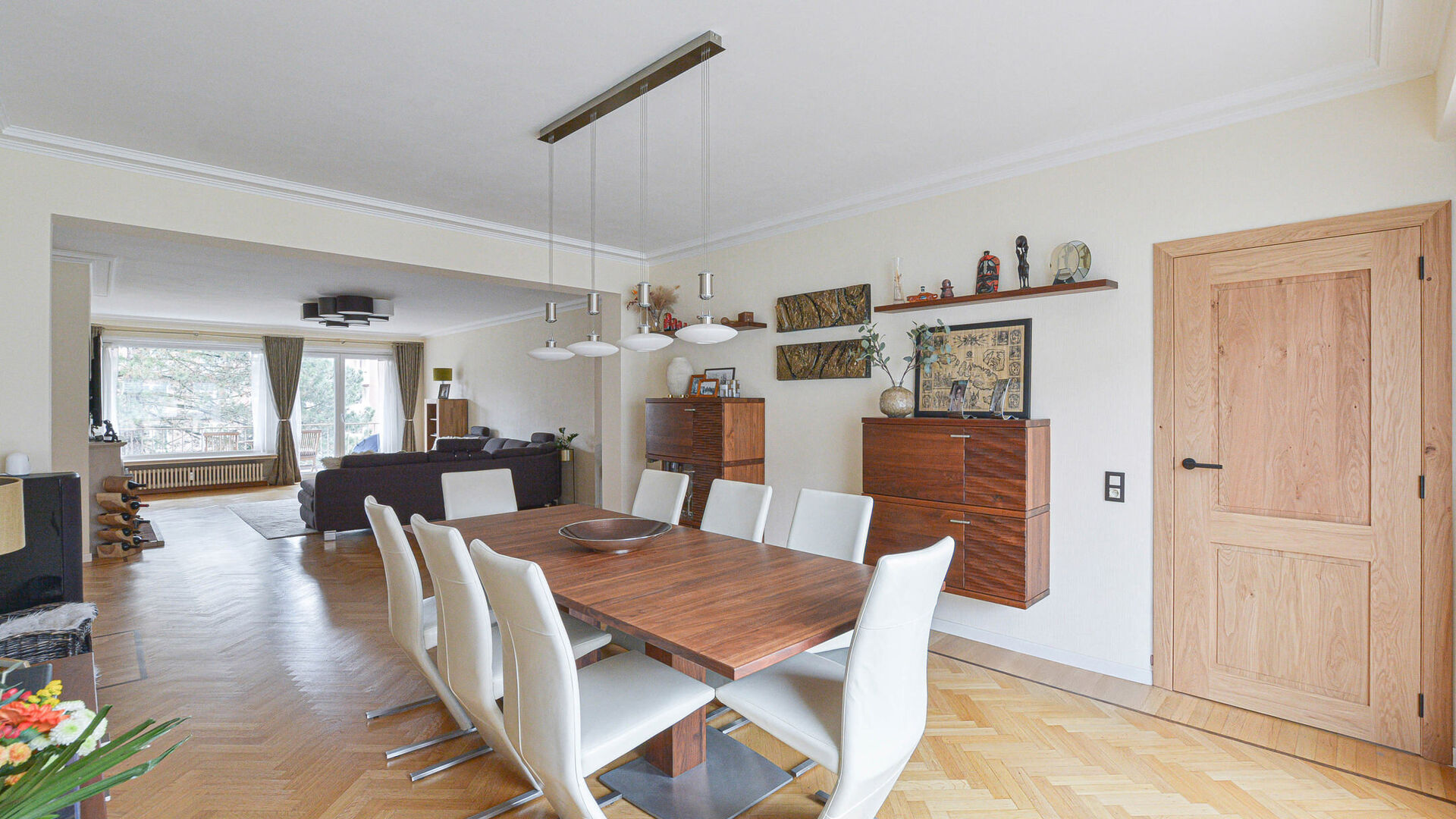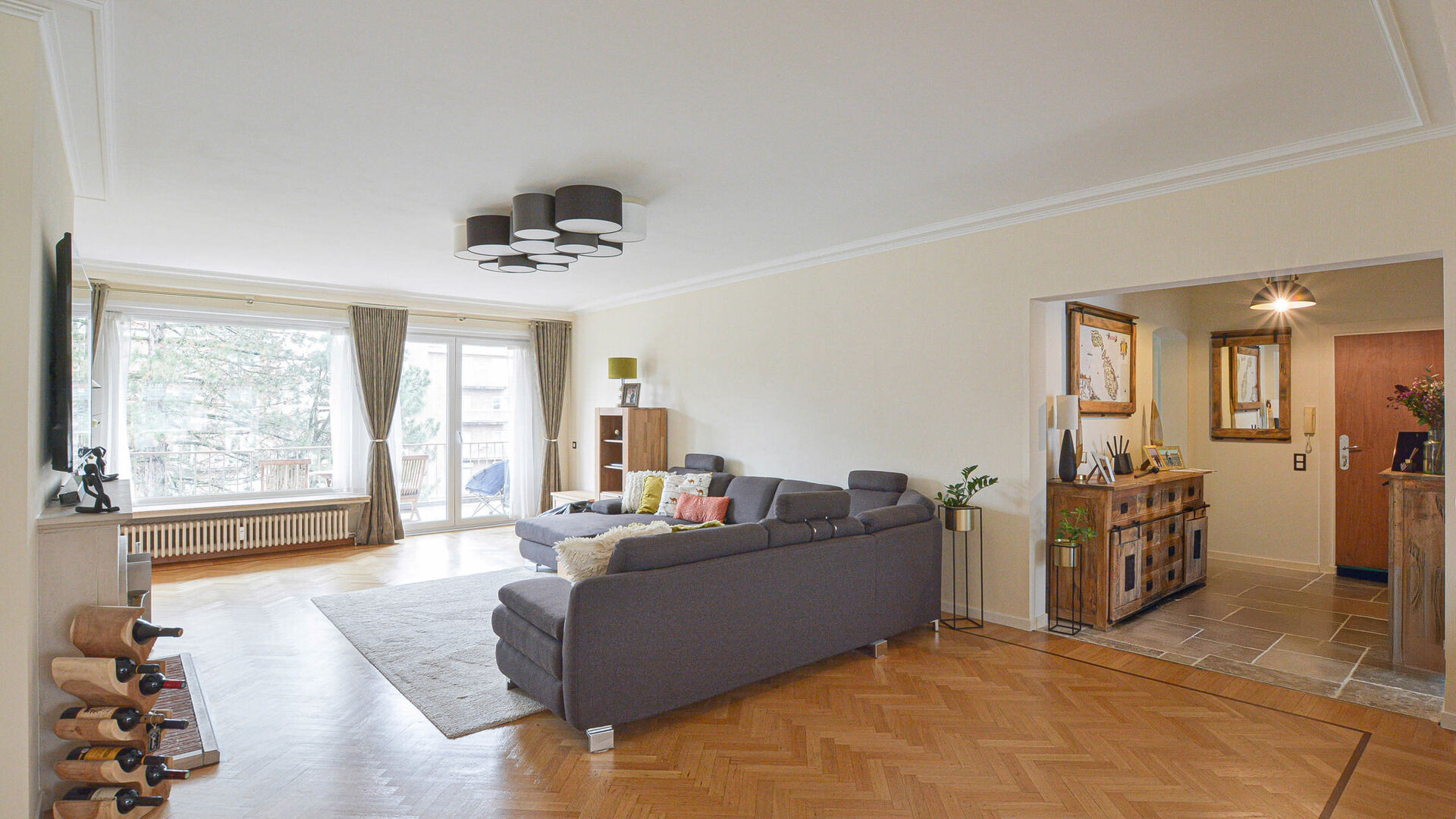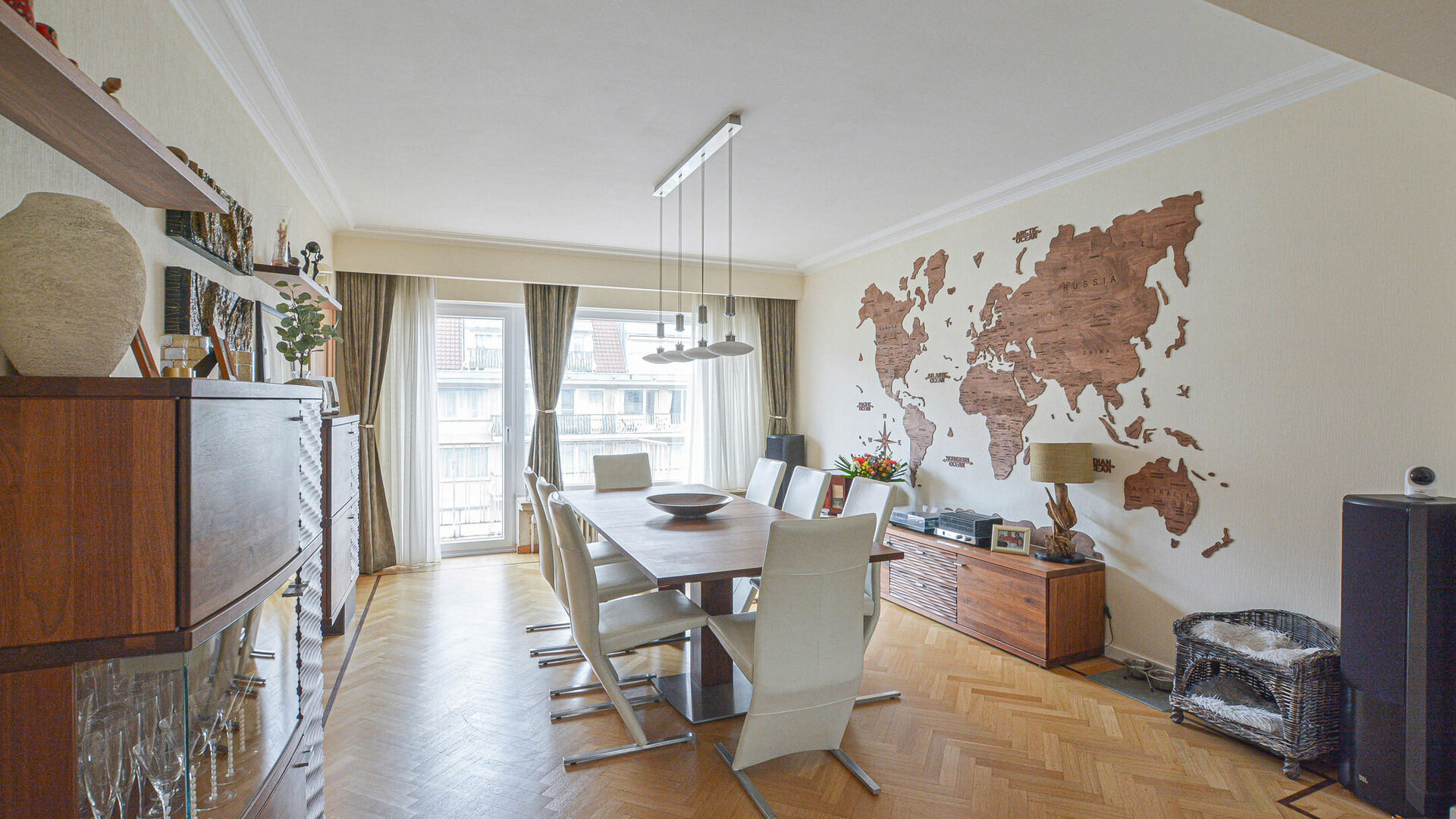 This tastefully renovated, spacious apartment of +/- 152m² (according to energy rate) is located on the 4th floor and is composed as follows: