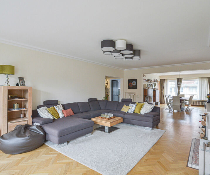 This tastefully renovated, spacious apartment of +/- 152m² (according to energy rate) is located on the 4th floor and is composed as follows: