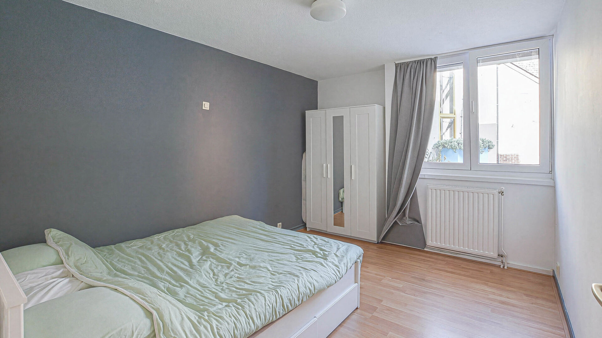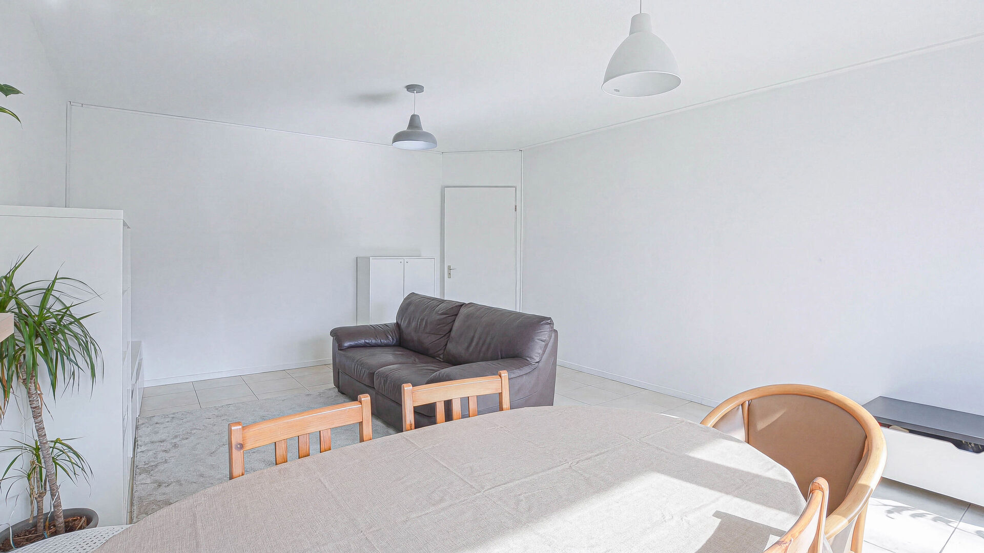 Entrance hall // bright living room +/- 25 m² with access to the south-facing garden // open, fully equipped kitchen +/- 6.6 m² (fridge, freezer, oven, induction hob, dishwasher) // night hall with separate toilet // two bedrooms +/-12 m² each // bathroom with bathtub and sink.