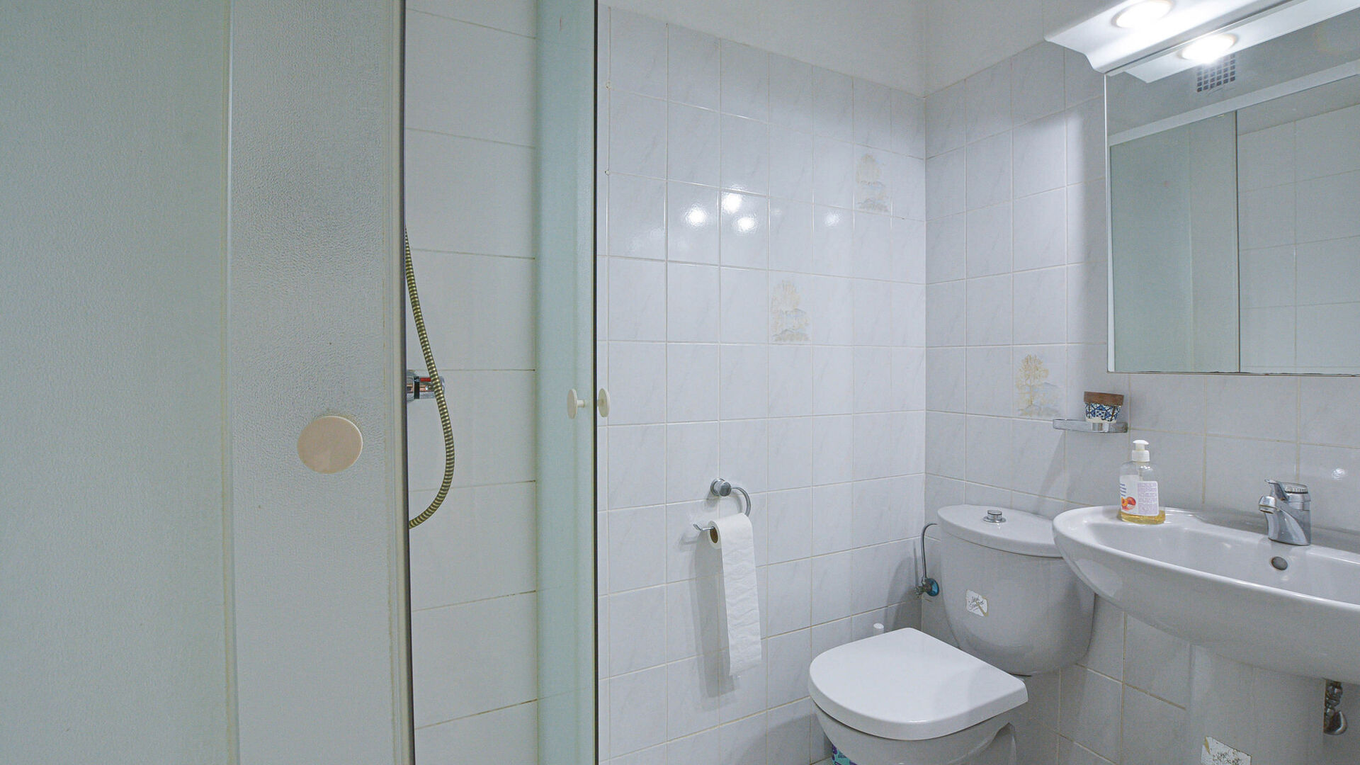2nd floor: Night hall, three bedrooms (±14 m², 11 m² and 6 m²) and a bathroom with shower, sink and toilet.