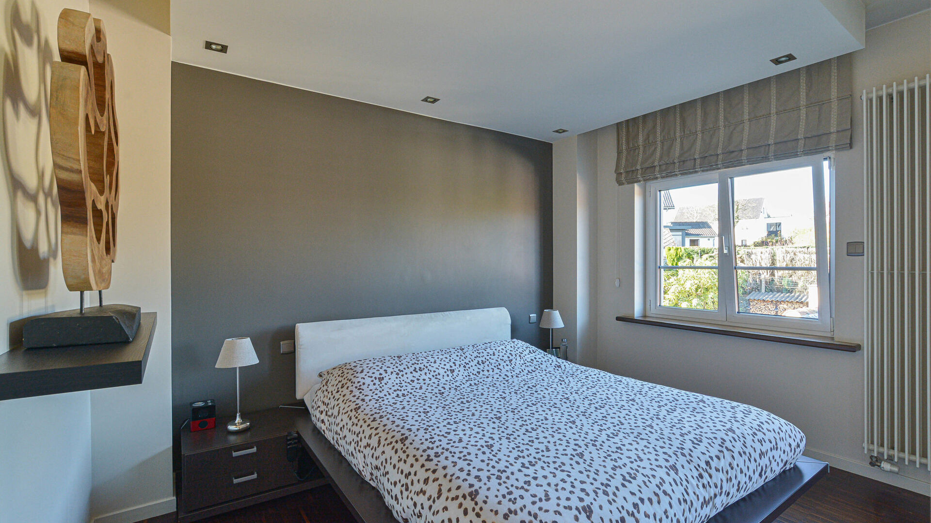 On the ground floor, the entrance hall with guest toilet leads to a bright and spacious living and dining area with an open-plan kitchen, fully equipped in 2023 (induction hob, extractor hood, 2 ovens, dishwasher, fridge). This welcoming space opens onto a beautifully landscaped terrace with a pond, lounge area, garden shed, a large garage, and parking space at the front. The first floor includes a landing, two comfortable bedrooms (±17 m² and ±10 m²) – one currently used as a dressing room – and a modern bathroom featuring a walk-in shower and vanity unit. The basement is fully functional, offering converted cellar spaces used as an office and storage areas with a technical room. The attic provides great potential for conversion into a third bedroom and second bathroom, depending on your needs and projects. This house stands out for its complete renovation, excellent condition, and numerous assets: