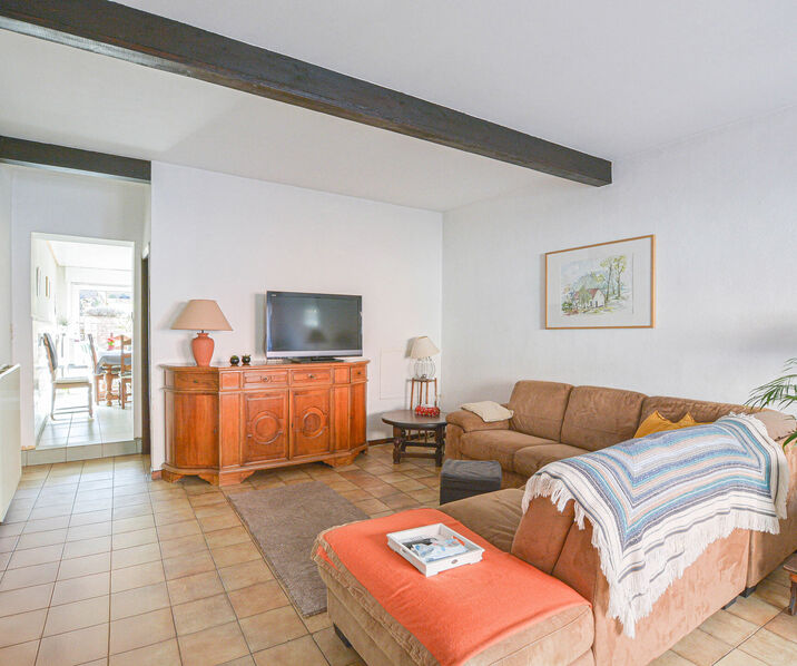 Entrance hall //living room +/- 24.40 m² // equipped kitchen with dining area +/- 20 m² with direct access to the terrace and the south-facing garden, perfect for enjoying sunny days // separate toilet // laundry area +/- 7 m² with built-in cupboards.