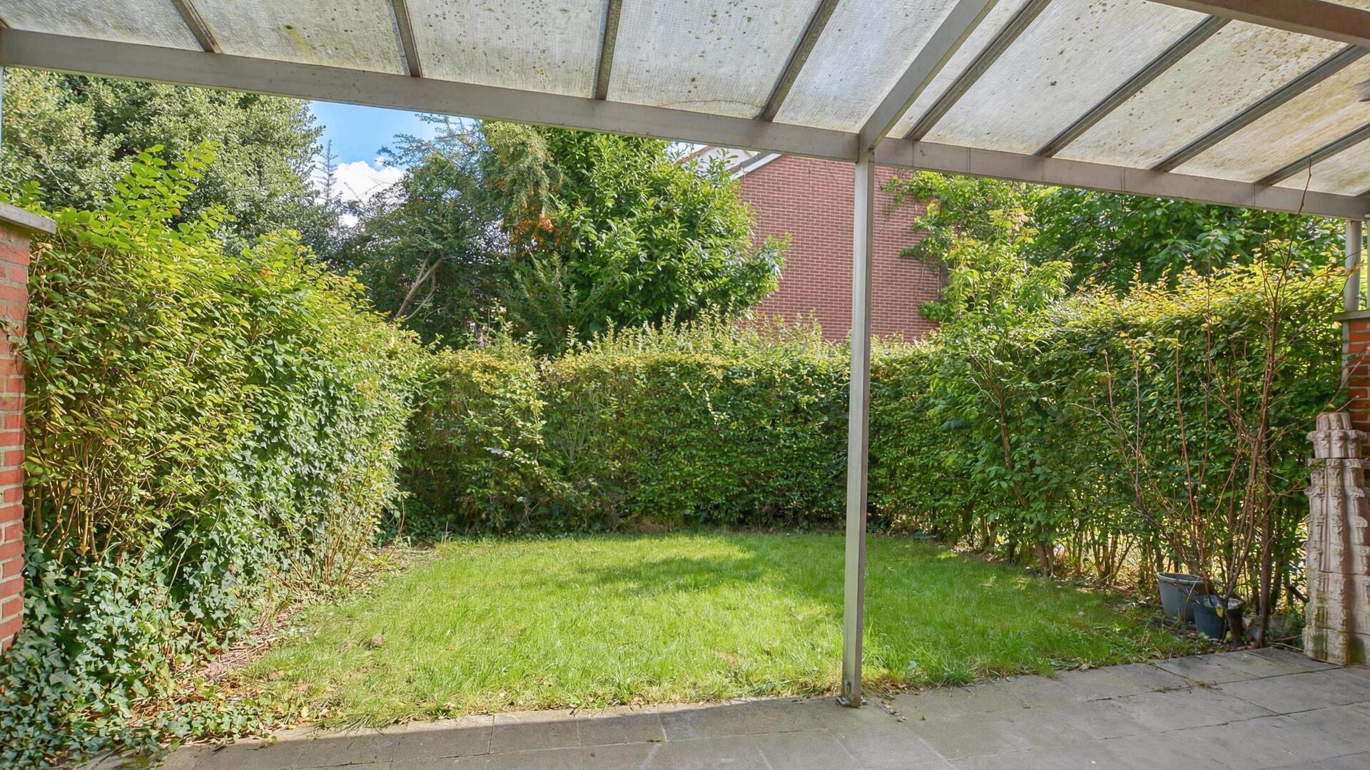 Ground floor: Entrance hall // separate toilet // living/dining room ±25 m² // fully equipped kitchen // terrace ±12 m² and garden
