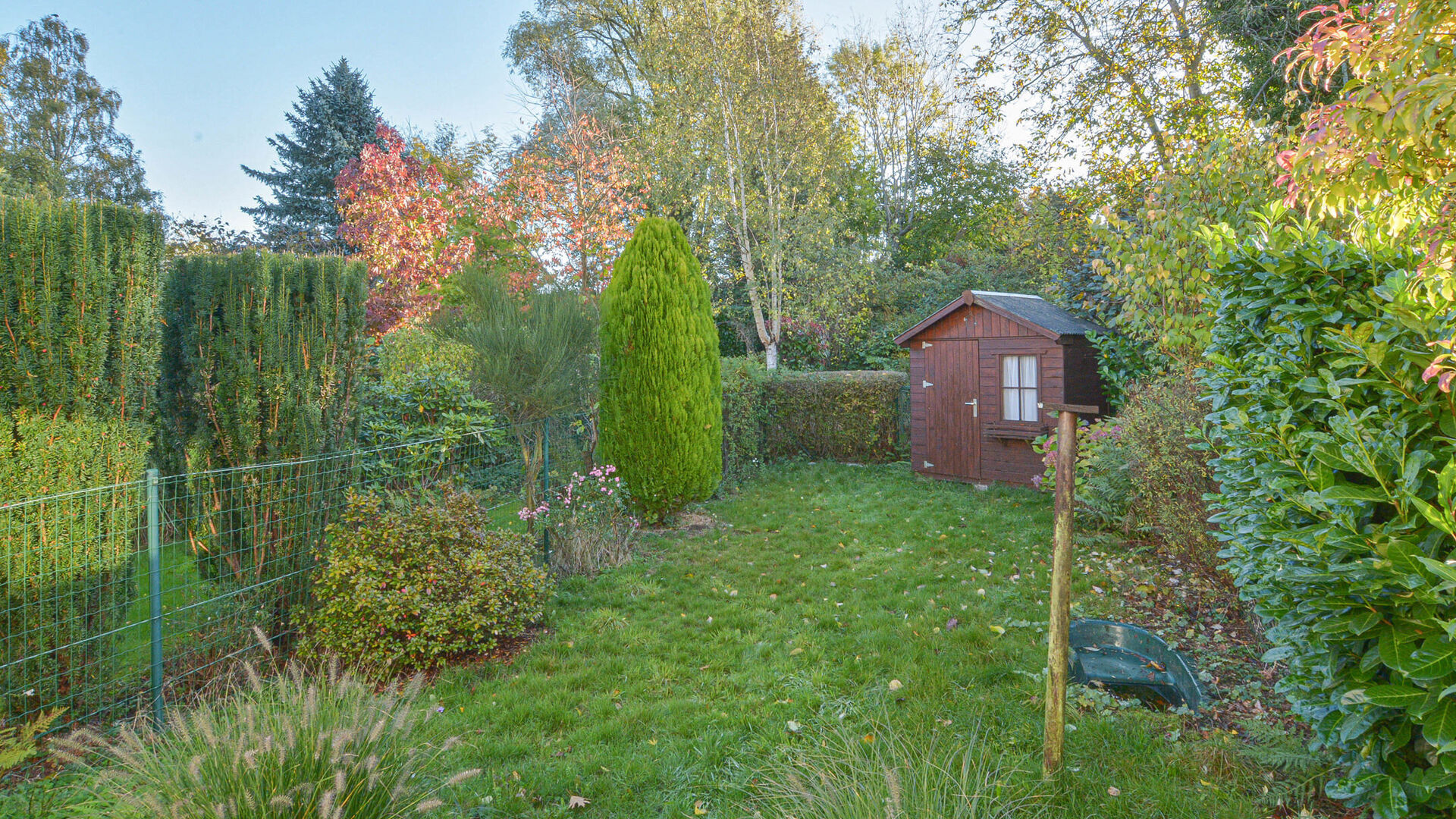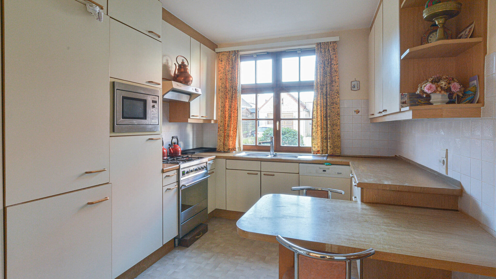 - Basement: Technical room with heating system, laundry room, storage cellar and meters. - Ground floor: Entrance hall with guest toilet, bright living and dining room of ±35 m² with access to a pleasant west-facing garden with terrace and garden shed. Fully equipped kitchen with breakfast area.