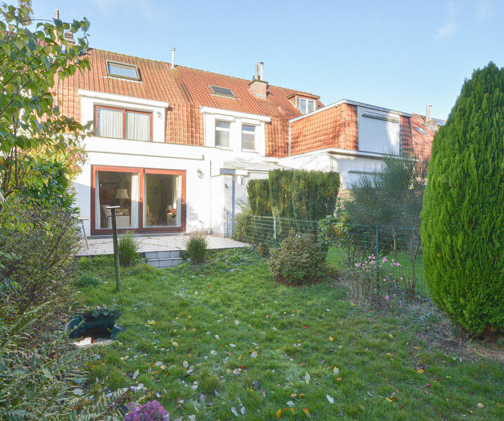 - Basement: Technical room with heating system, laundry room, storage cellar and meters. - Ground floor: Entrance hall with guest toilet, bright living and dining room of ±35 m² with access to a pleasant west-facing garden with terrace and garden shed. Fully equipped kitchen with breakfast area.