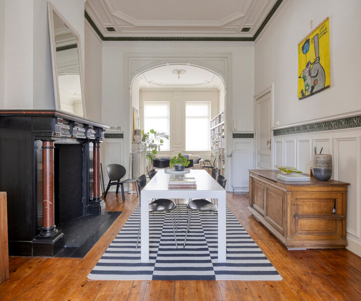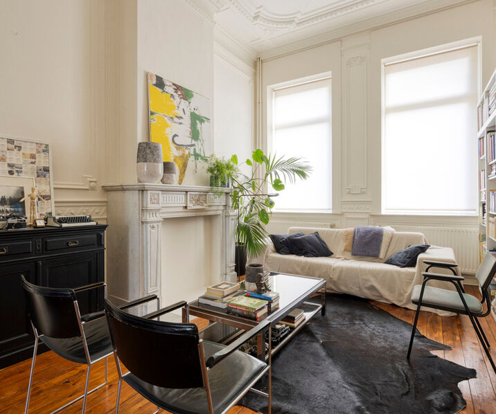 Garden level: apartment of +/-62m² consisting of: living room + dining room + bedroom with access to the terrace and garden - kitchen (oven, induction hob, sink and refrigerator) - bathroom (shower, sink and toilet). EPC: 501kWh/m².