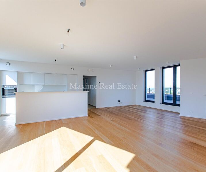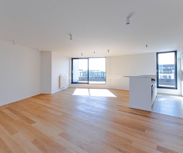 Magnificent Penthouse of +/- 137m², located on the 8th floor of a 2017 building. Composed of: Entrance hall with separate toilet and utility room, living, dining room +/- 45m² with a super equipped open kitchen (hobs, oven, dishwasher, fridge/freezer). Master bedroom of 14m² + Shower room, 2 bedrooms of +/- 10m², bathroom with bath, sink and toilet, 2 large terraces with magnificent views.