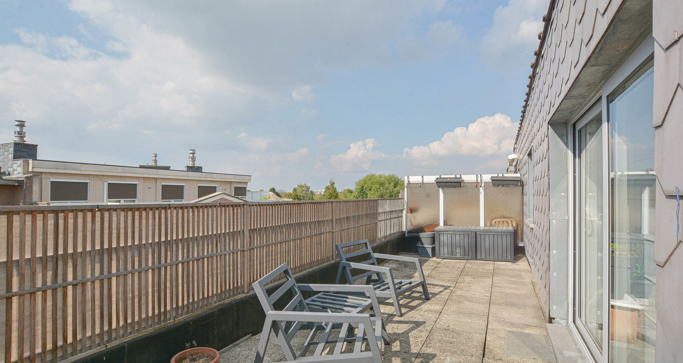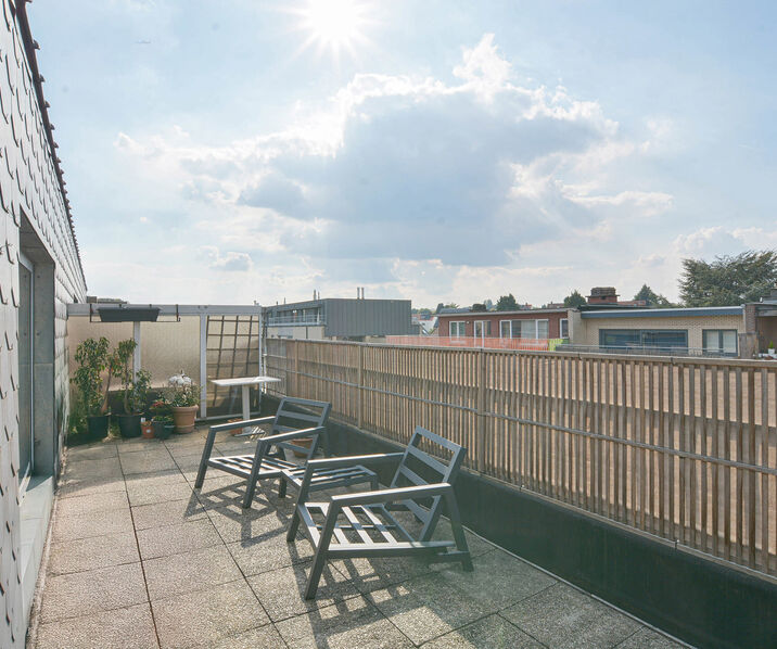Entrance hall with cloakroom area and separate toilet, equipped kitchen (oven, cooker), bright living and dining area of +/-18 m², giving access to a lovely west-facing terrace, perfect for enjoying the evening sun. The night area comprises a bedroom of +/-11 m² with an ensuite bathroom equipped with a bathtub/shower combination, sink, and a connection for a washing machine.
