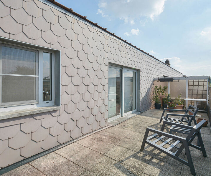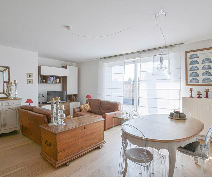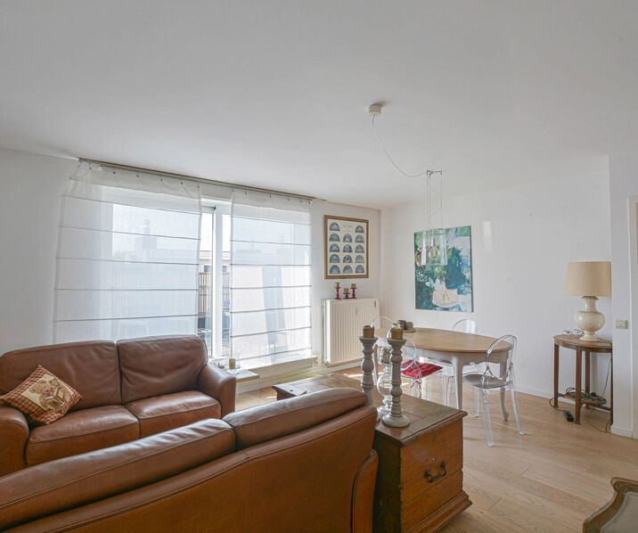 This charming apartment +/-63 m² (according to the Energy certificate) is located on the 4th and top floor of a well-maintained building and provides a pleasant and bright living environment. It is composed as follows: