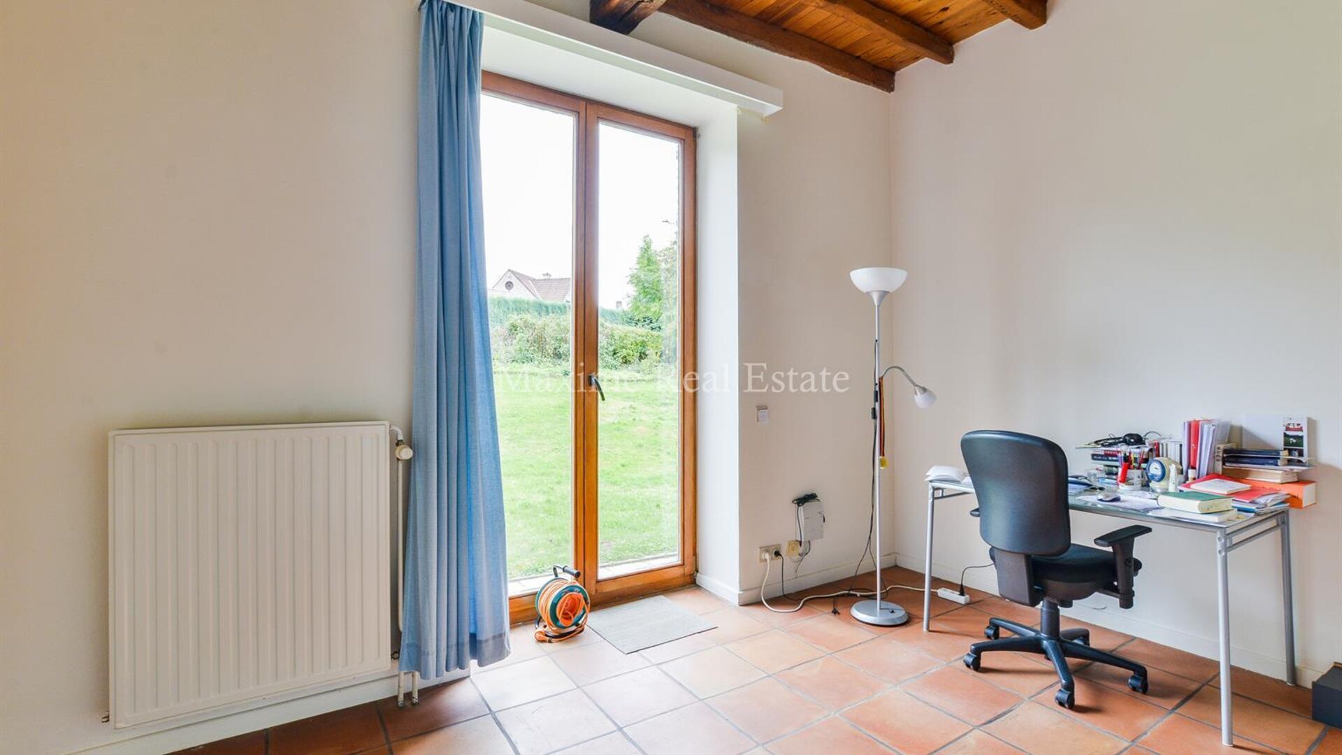 GROUND FLOOR: Entrance hall with cloakroom and separate toilet // spacious dining and living room with fireplace +/- 50m² leading to the terrace +-28m² and SOUTH oriented garden +-300m² // office/study +/- 13m² // spacious fully equipped kitchen (electric cooker, oven, fridge/freezer, dishwasher,...) // laundry room //