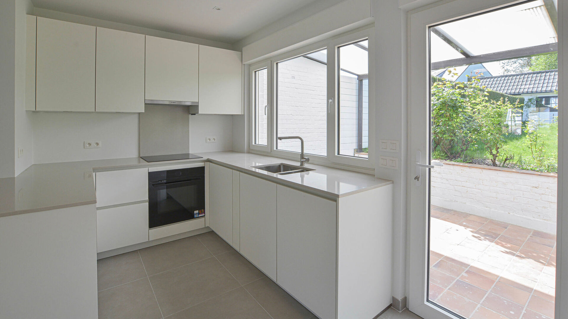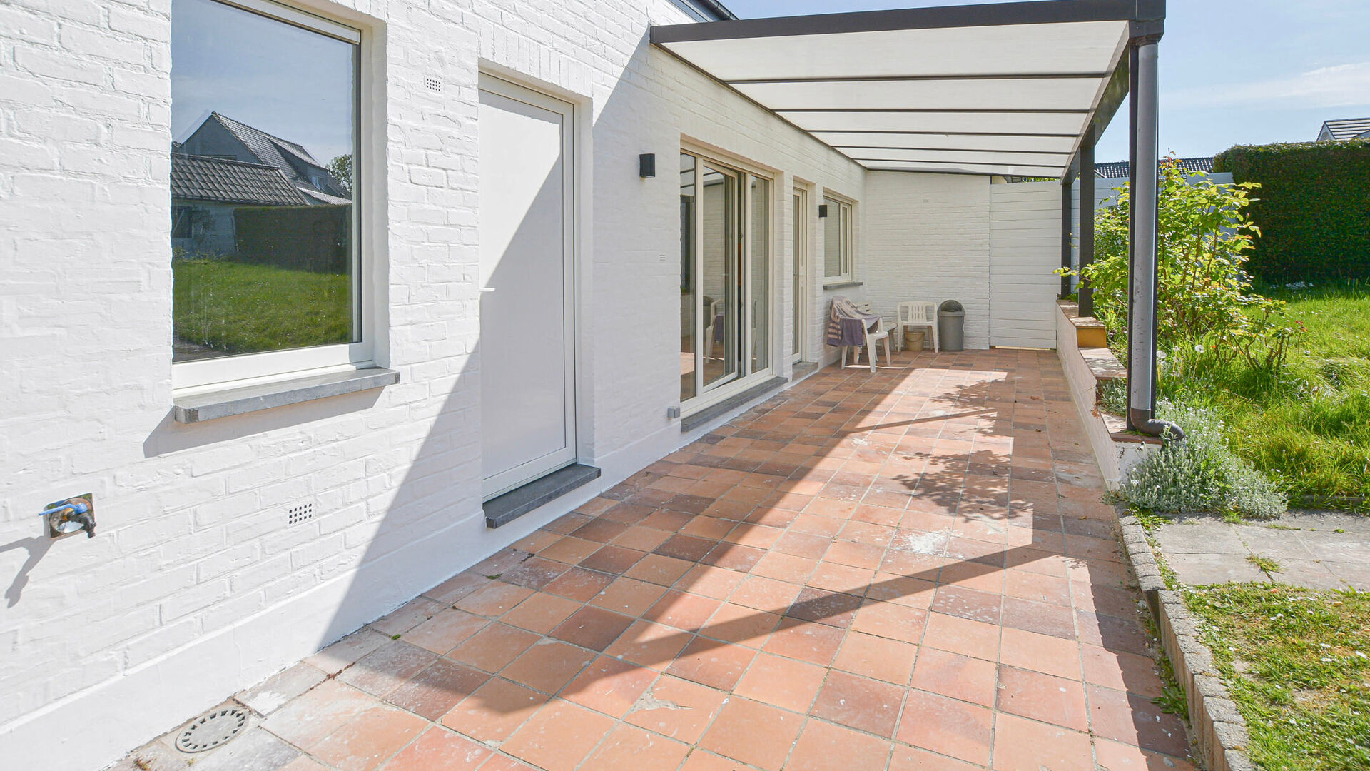 Entrance hall with separate toilet and cloakroom space +/- 4.5 m² // bright living room +/- 28.5 m² with open-plan, fully equipped kitchen and breakfast area (induction hob, oven, fridge, freezer, and dishwasher) // terrace +/- 28 m² (will be refurbished) // pleasant garden with garden shed (garden will be fenced) // a carport will be installed with an electric charging station // garage +/- 19 m² with manual door + laundry area // outdoor parking space.