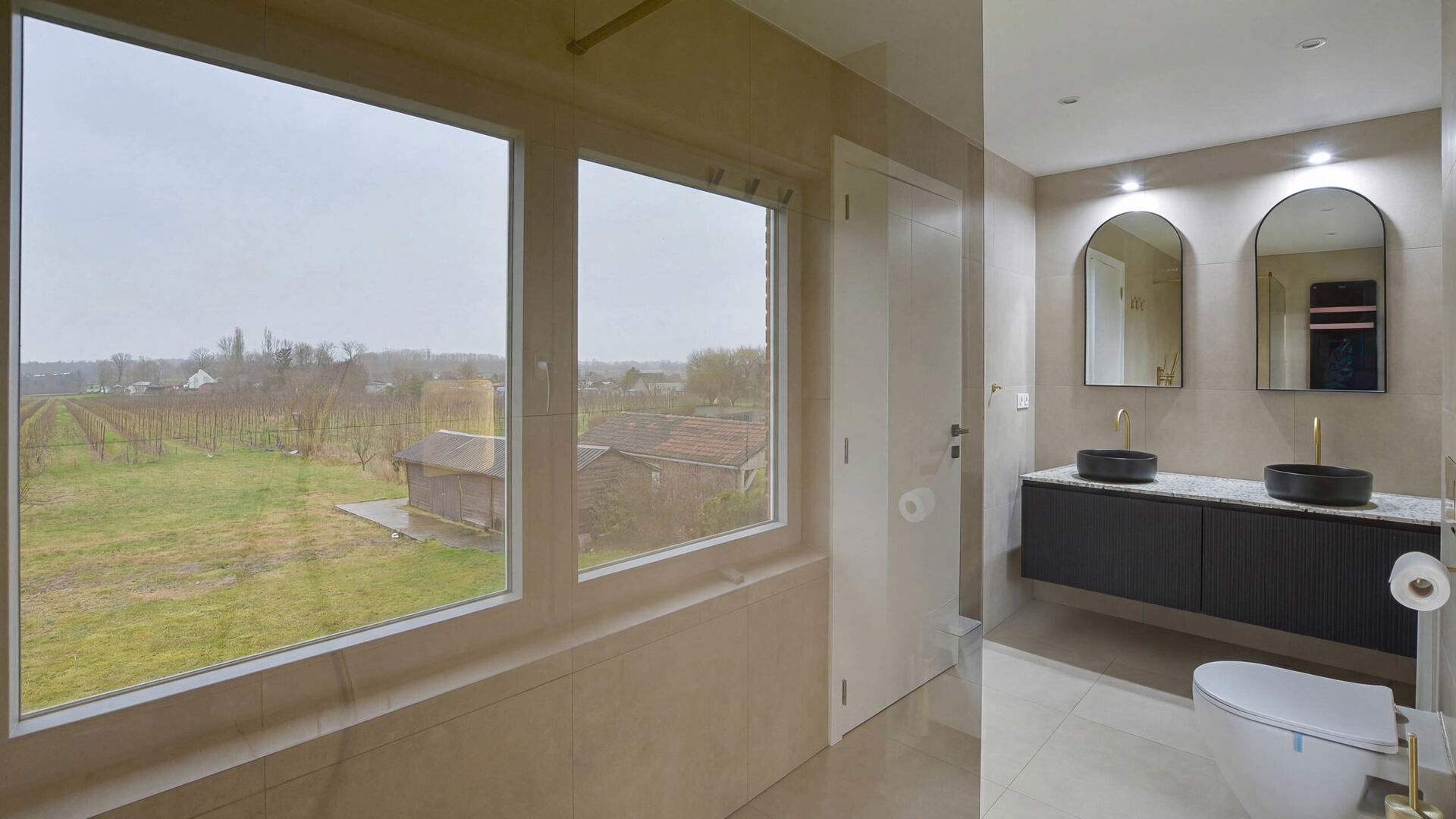 - 1st floor: Night hall, 4 spacious bedrooms (+/-20-18-17-12 m²) , and a bathroom with walk-in shower, toilet, and double sink.