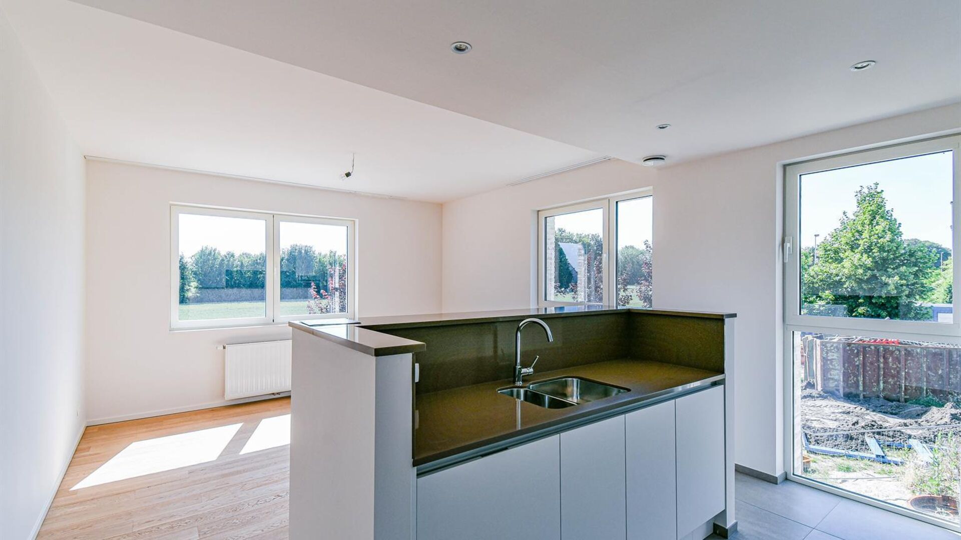 Hall d'entrée // wc séparé // séjour +/- 15m² donnant accès à la terrasse (SUD) +/- 5,8m² // cuisine équipée // salle à manger +/-13m² // 2 chambres +/- 11,5 - 11,5m² // salle de bain // espace buanderie //