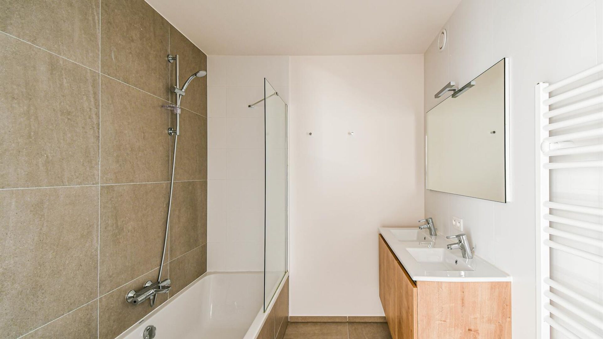 Ce lumineux appartement +/- 107m² situé au 1e étage dans une construction récente se compose comme suit: