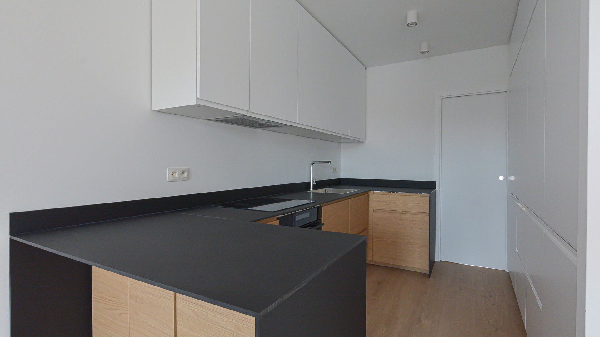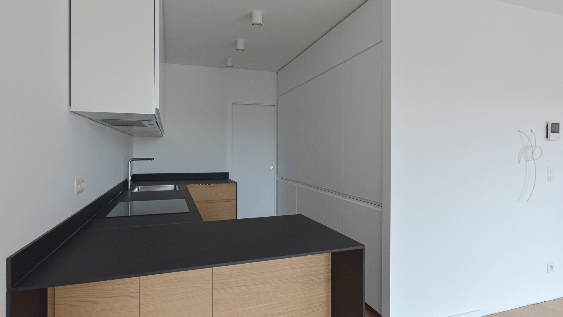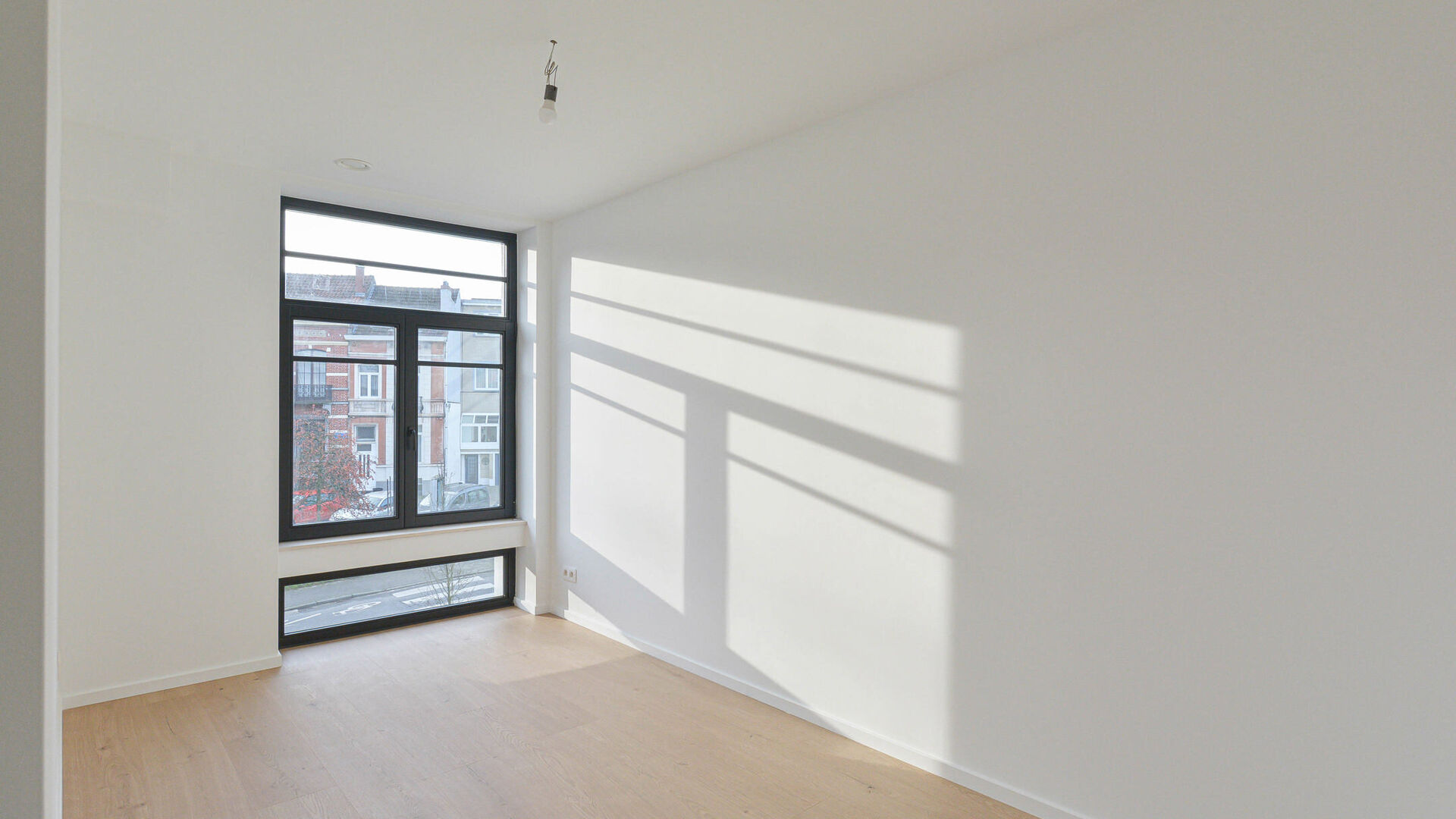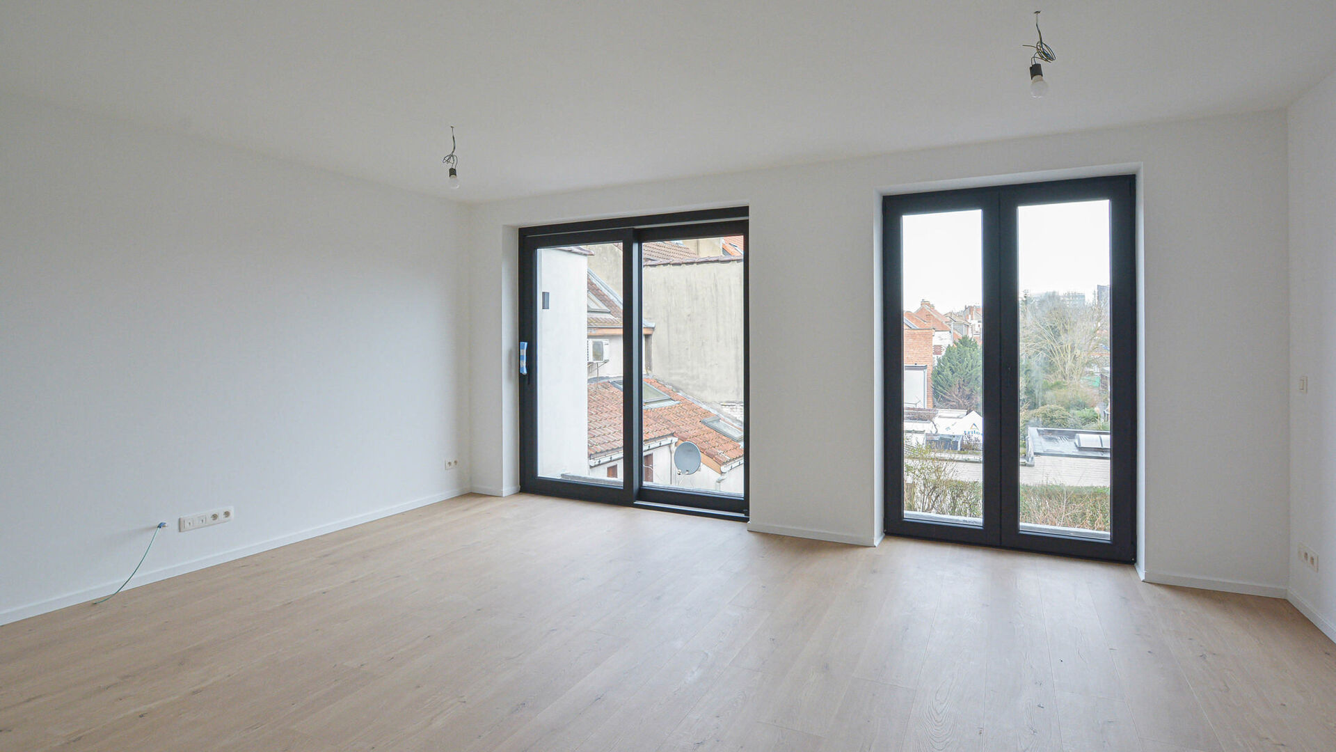 Un lumineux séjour et salle à manger de +/- 32 m² avec accès à une petite terrasse et une cuisine entièrement équipée, un hall de nuit avec WC séparé, deux chambres de +/- 15 m² et +/- 10 m², ainsi qu’une salle de bains équipée d’une douche à l’italienne, d’un lavabo et d’une machine à laver.