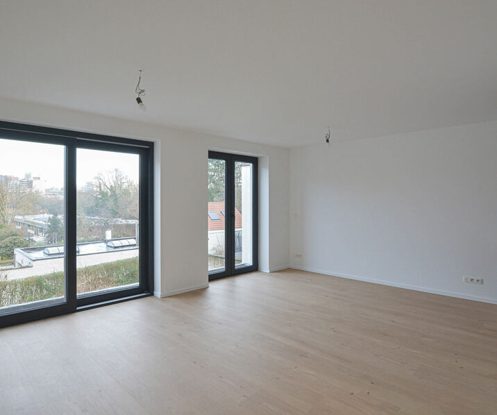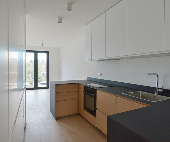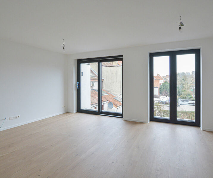 Un lumineux séjour et salle à manger de +/- 32 m² avec accès à une petite terrasse et une cuisine entièrement équipée, un hall de nuit avec WC séparé, deux chambres de +/- 15 m² et +/- 10 m², ainsi qu’une salle de bains équipée d’une douche à l’italienne, d’un lavabo et d’une machine à laver.