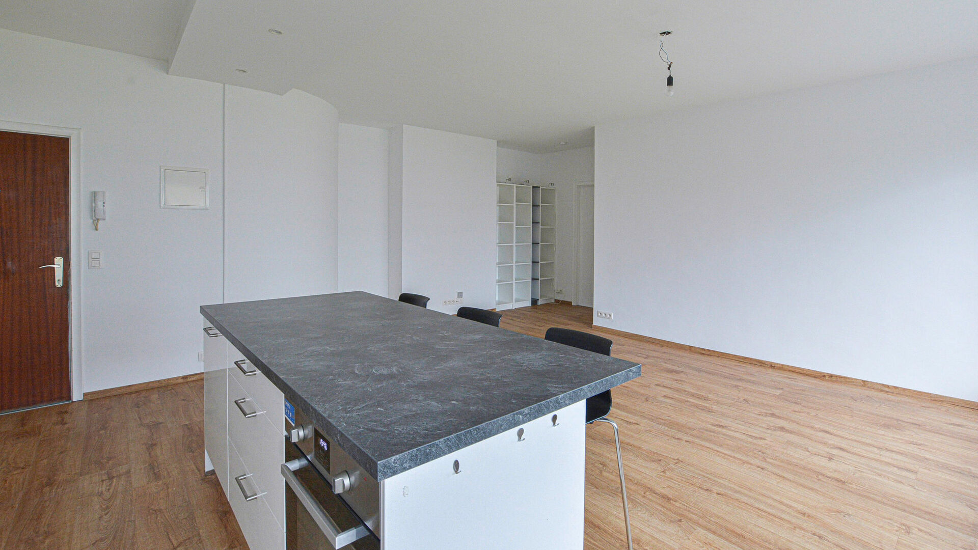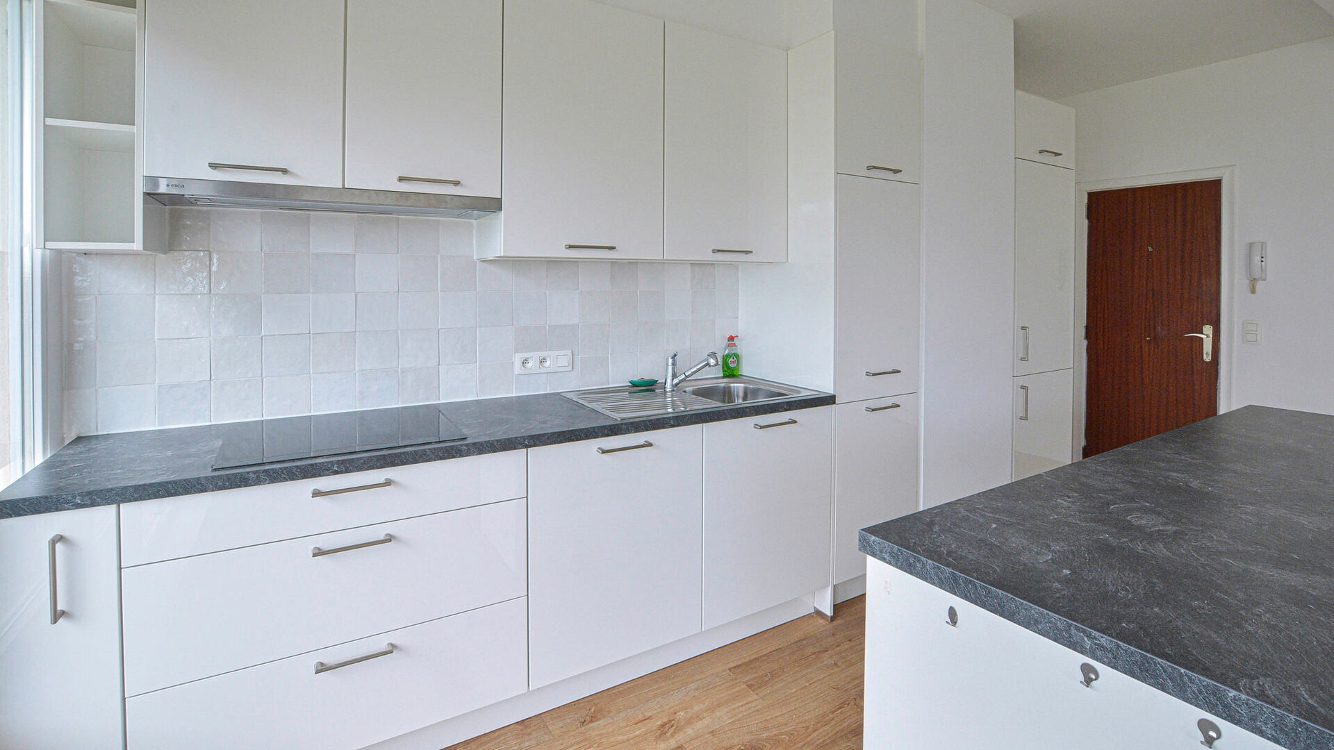 Beau séjour lumineux +/- 19 m² avec cuisine ouverte : îlot central équipé (réfrigérateur, congélateur, four, lave-vaisselle, plaques à induction) // terrasse orientée EST longeant l’ensemble de l’appartement +/- 16 m² // hall de nuit avec WC séparé // 2 chambres à coucher +/- 12m² -11,7m² // salle de douche avec douche à l’italienne, lavabo et emplacement pour machine à laver // cave privative.