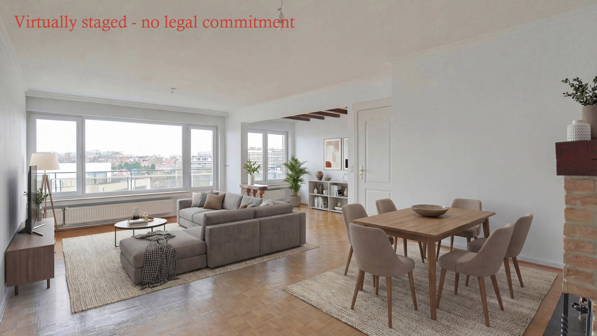 D’une superficie d’environ 88 m² (selon le PEB), il se situe au 9ᵉ étage et se compose comme suit :