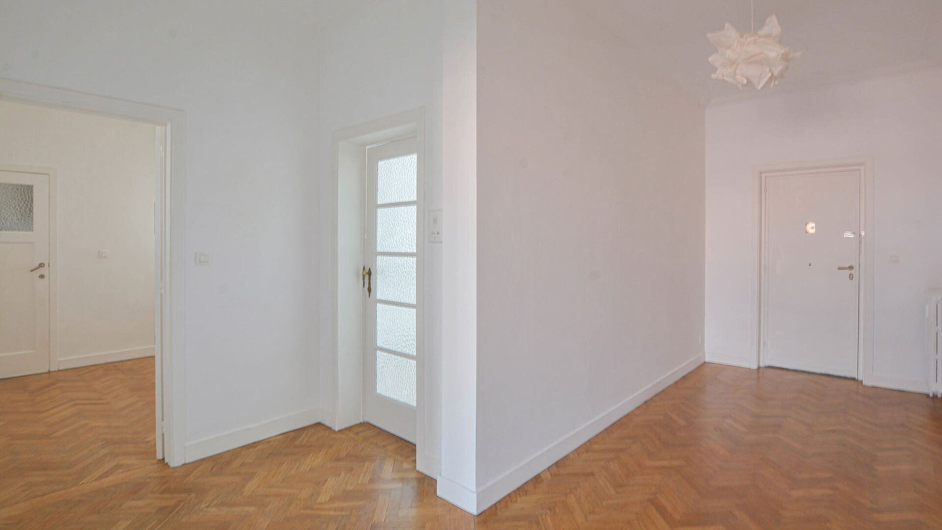 Il se compose comme suit : Hall d'entrée avec espace vestiaire. Cuisine équipée donnant sur une terrasse avec vue sur le parlement européen. Séjour-salle à manger, baignée de lumière naturelle. Hall de nuit desservant deux chambres à coucher. Salle de bains avec baignoire et lavabo.