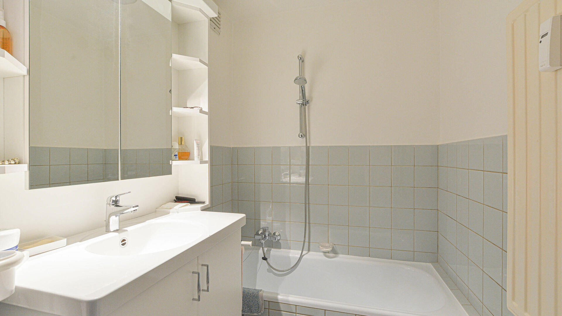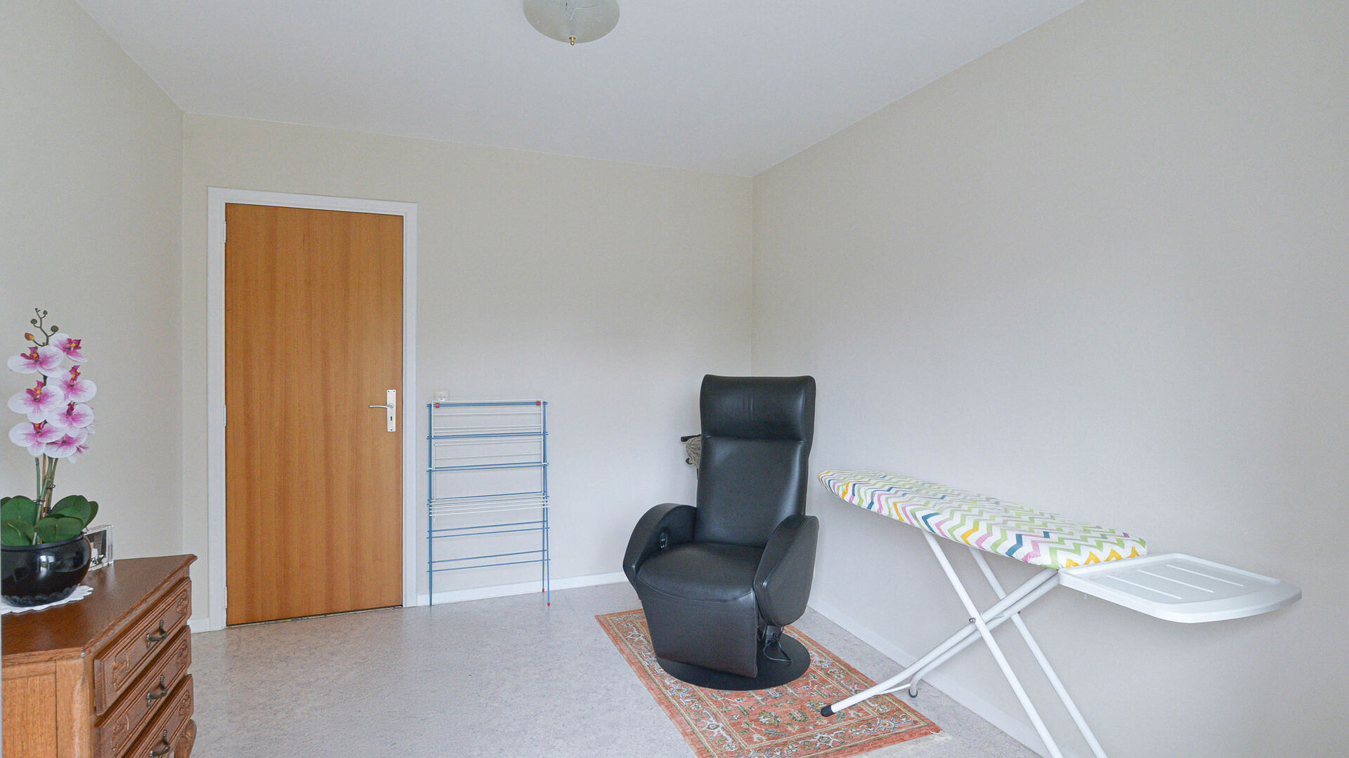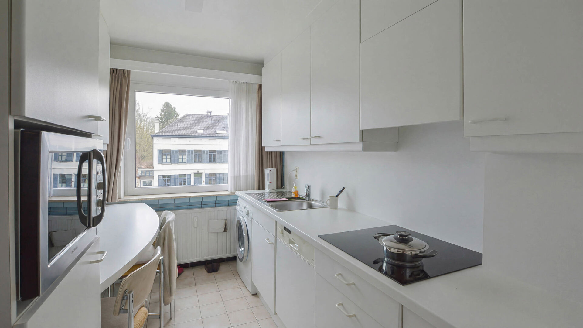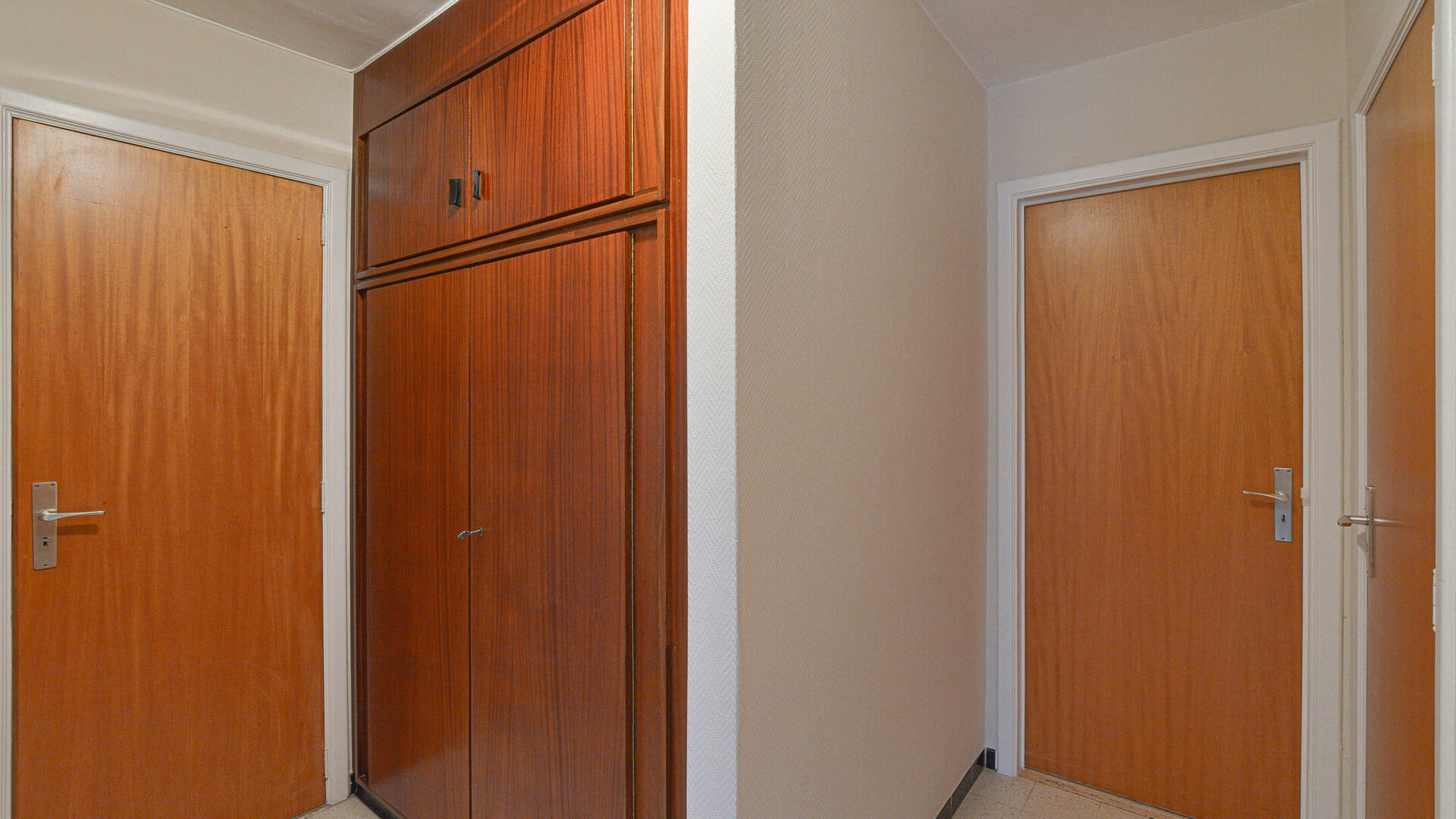 Hall d’entrée, lumineux séjour/salle à manger de +/-30m² donnant accès à une terrasse avant, cuisine entièrement équipée (plaque de cuisson, four, lave-vaisselle, réfrigérateur/congélateur, emplacement pour machine à laver...). Hall de nuit avec WC séparé, vestiaire et débarras. Deux chambres de +/-15m² et +/-11m², la plus petite donnant accès à une terrasse orientée Sud de +/-6m², salle de bains avec baignoire et évier. Une cave et un garage box + 30.000 € sont vendus avec l’appartement. Informations complémentaires : double vitrage, chauffage central au mazout, parlophone, porte sécurisée, actuellement loué.